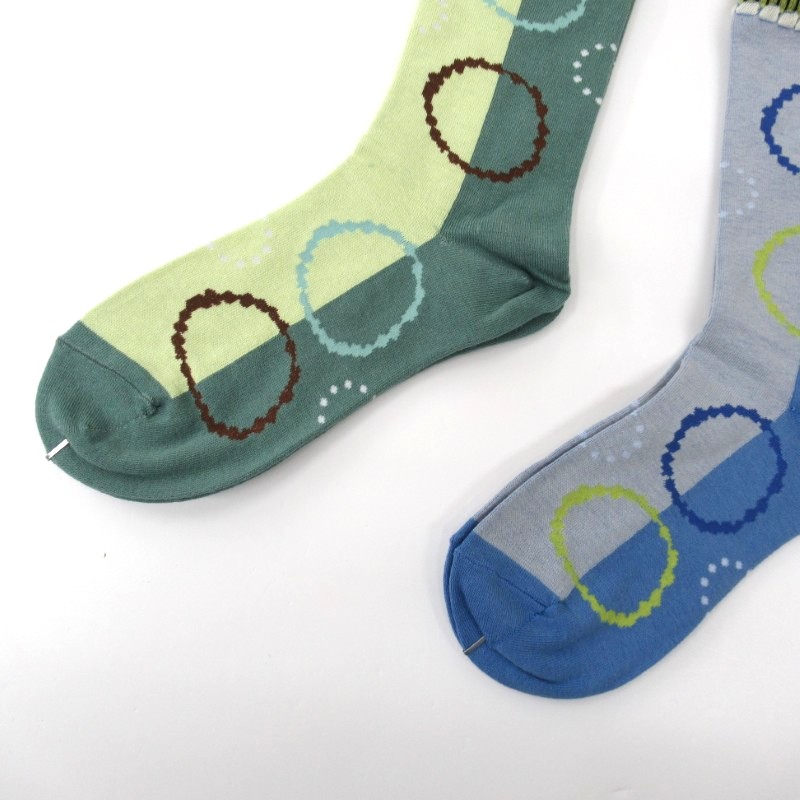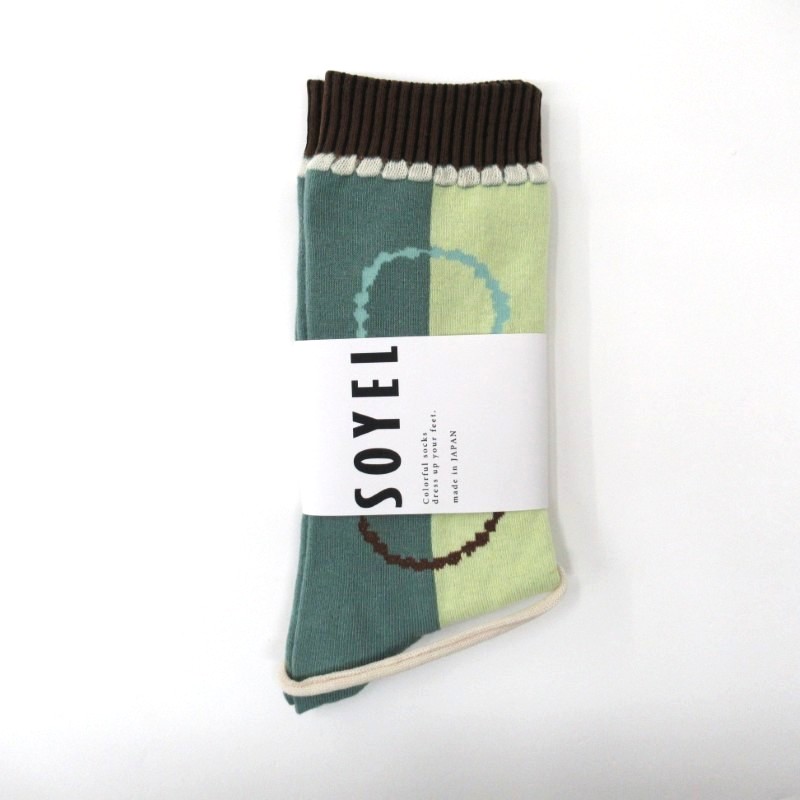 SOYEL サイドドットフロート柄ハイクルーソックス/GR 【日本製】