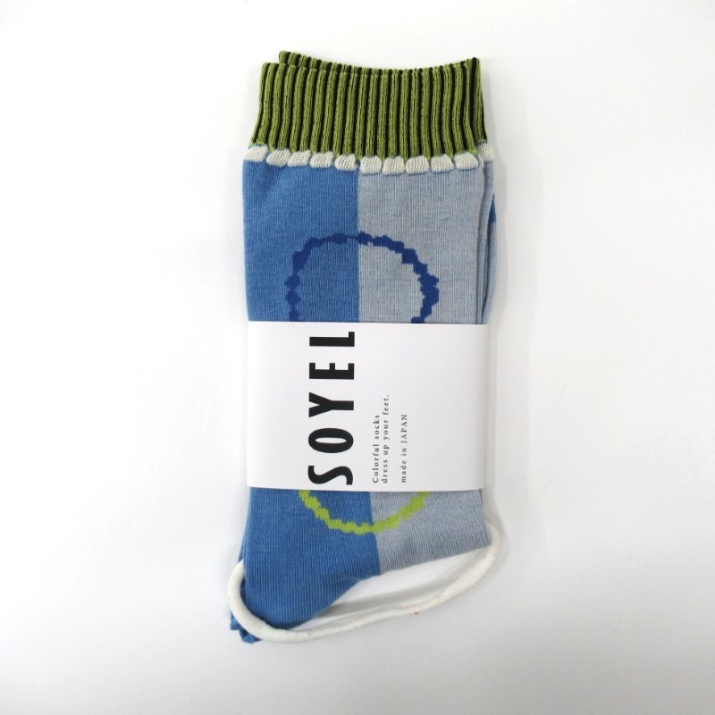 SOYEL サイドドットフロート柄ハイクルーソックス/BL 【日本製】