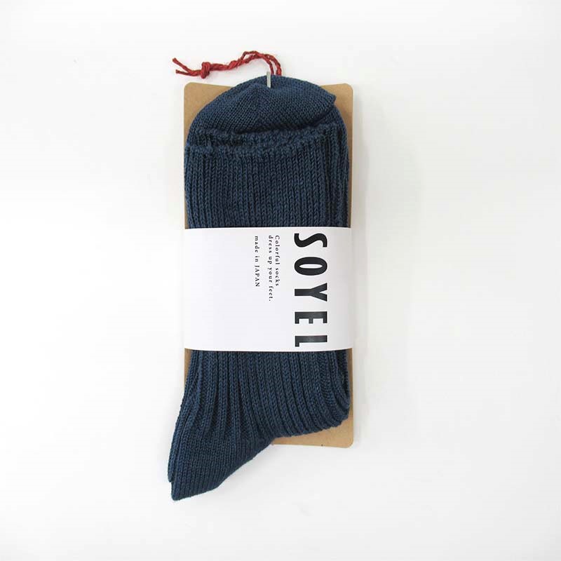 SOYEL リブ麻混ロークルーソックス/DB 【日本製】