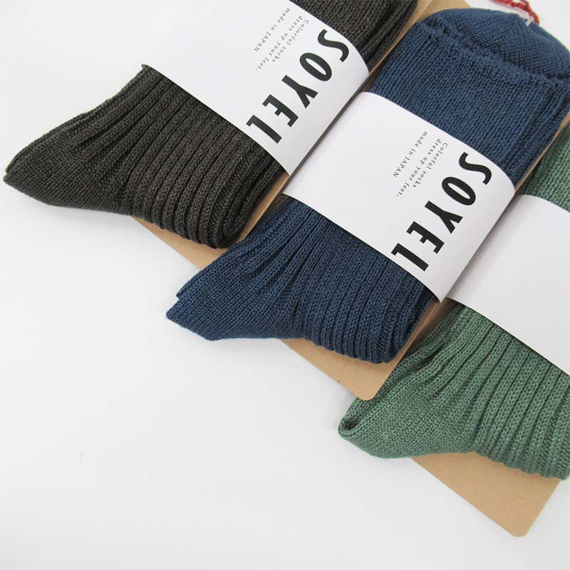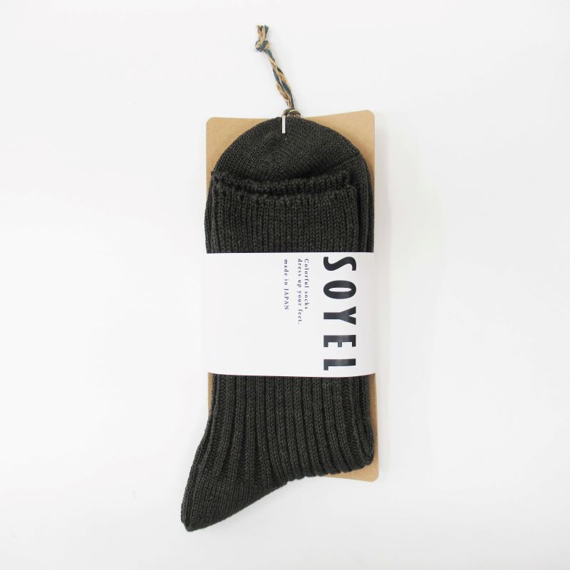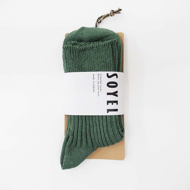 SOYEL リブ麻混ロークルーソックス 【日本製】