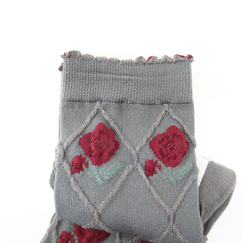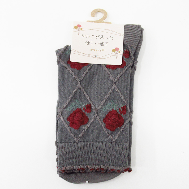 STREAM シルクが入った優しい靴下 バラ×ダイヤ柄/GY