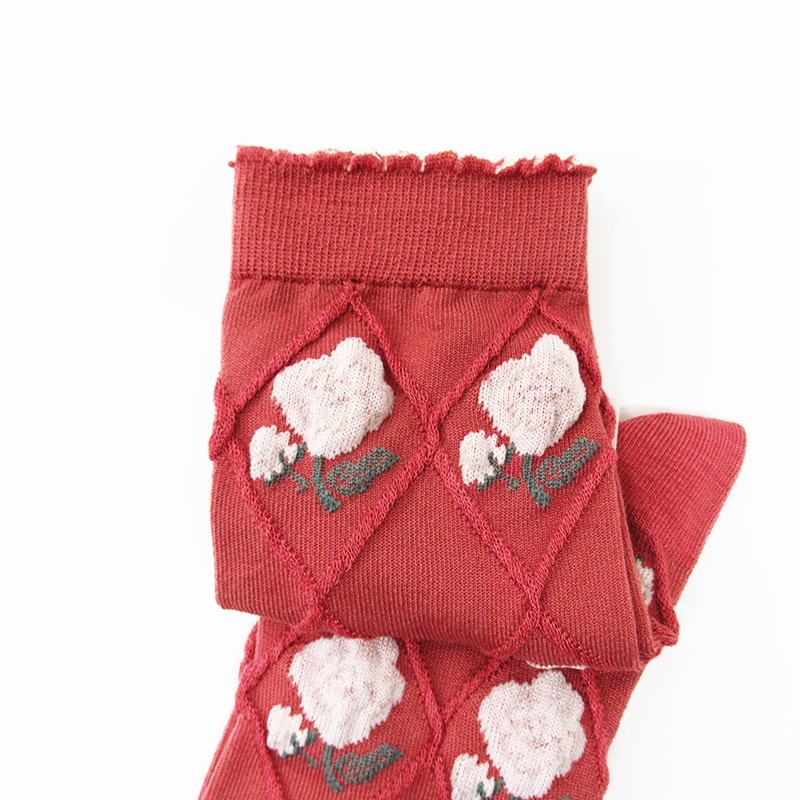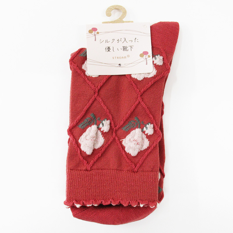 STREAM シルクが入った優しい靴下 バラ×ダイヤ柄