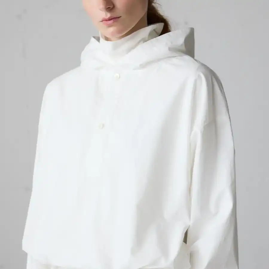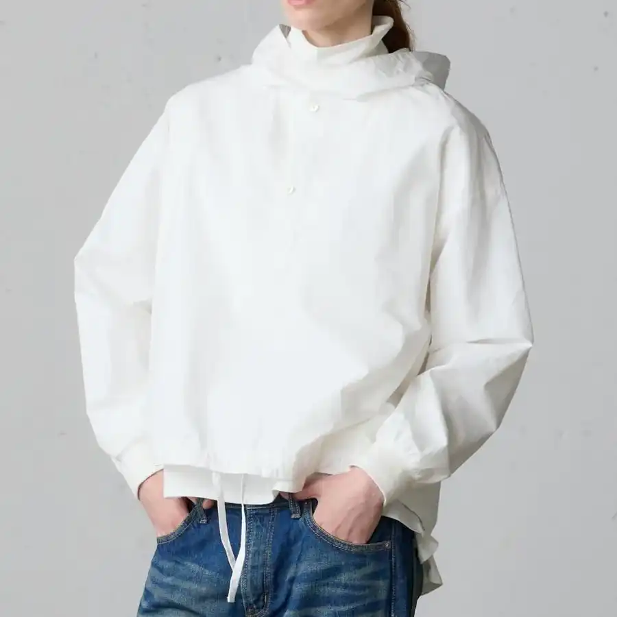 ハリのある40タイプライター生地を使用したシャツパーカー。