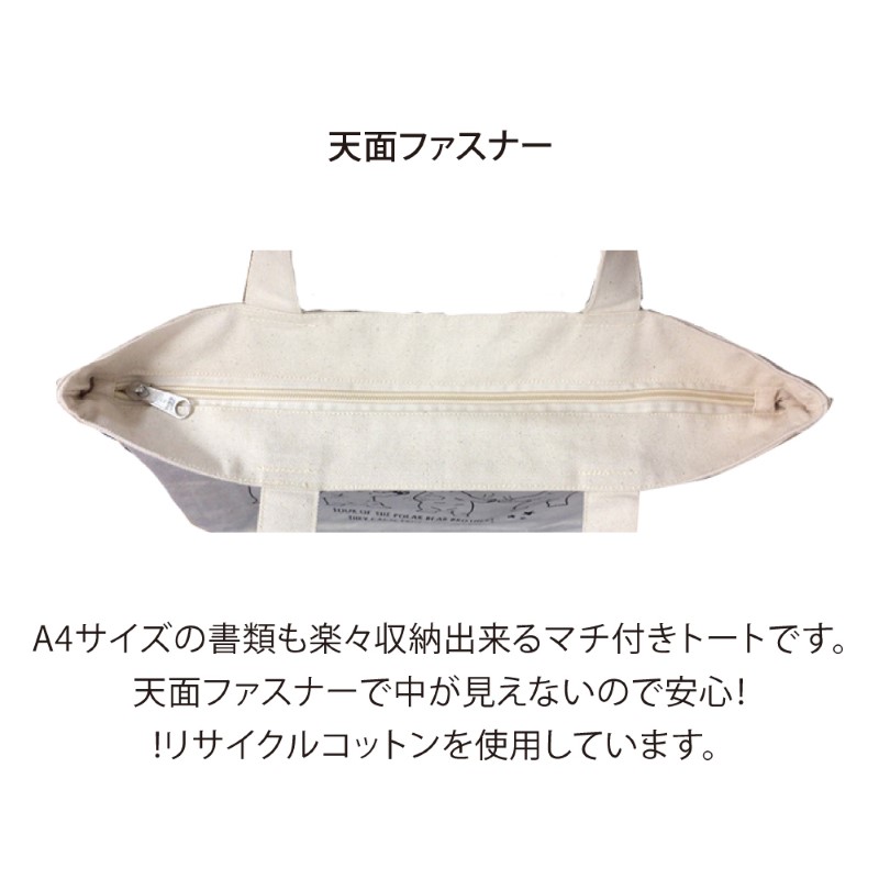 A4サイズの書類も楽々収納出来るマチ付きトートです。 天面ファスナーで中が見えないので安心!