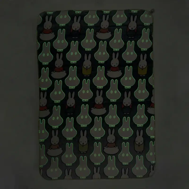 蓄光プリントによって暗闇で柄の一部が光りだす遊び心満載のブランケット。