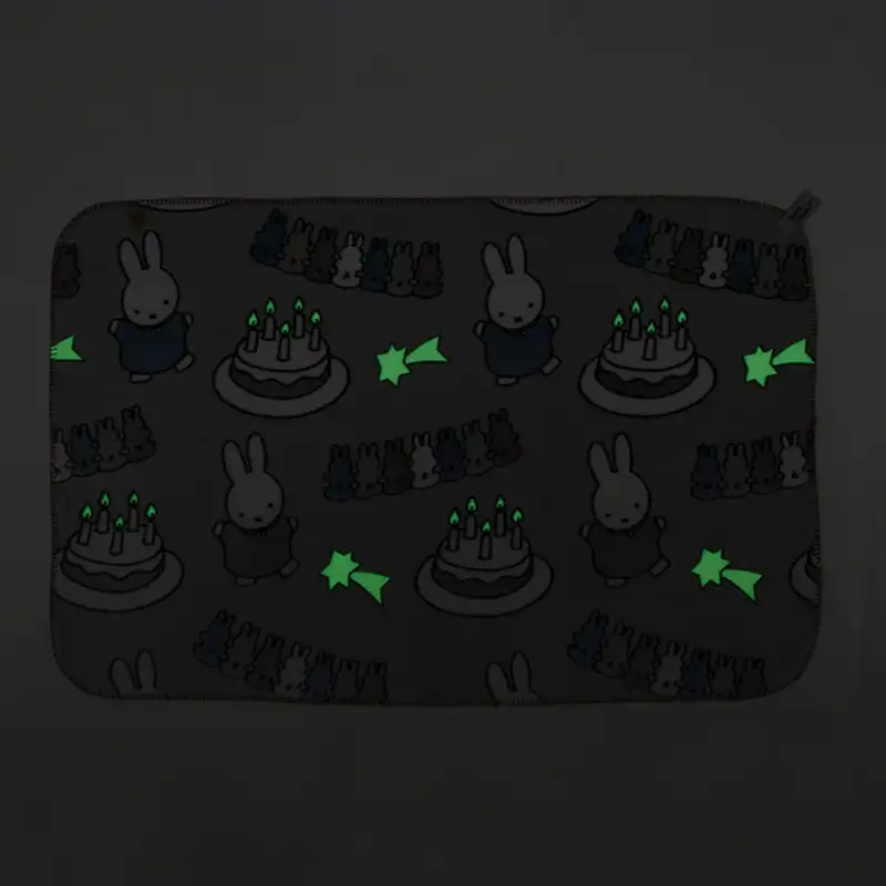 蓄光プリントによって暗闇で柄の一部が光りだす遊び心満載のブランケット。