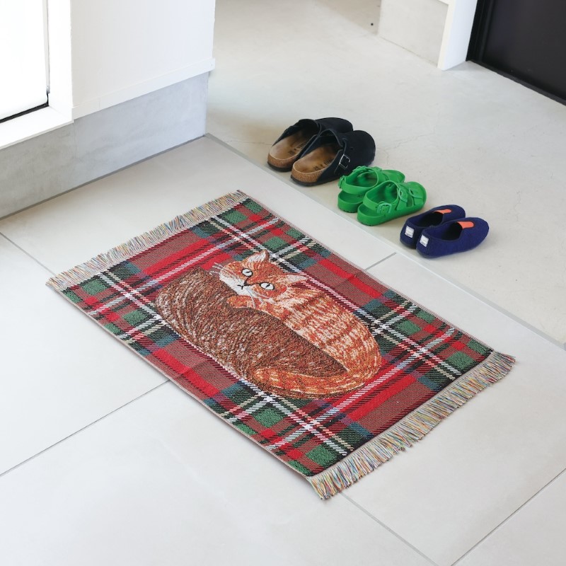 松尾ミユキさんのイラストを織り込んだ、ゴブラン織りのミニラグ。
