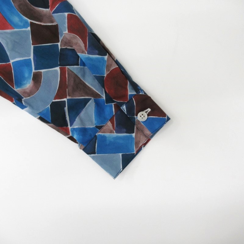 ライン、ブロック、三角形、曲線の巧みな相乗効果がまるで万華鏡のような色彩豊かなプリントです。
