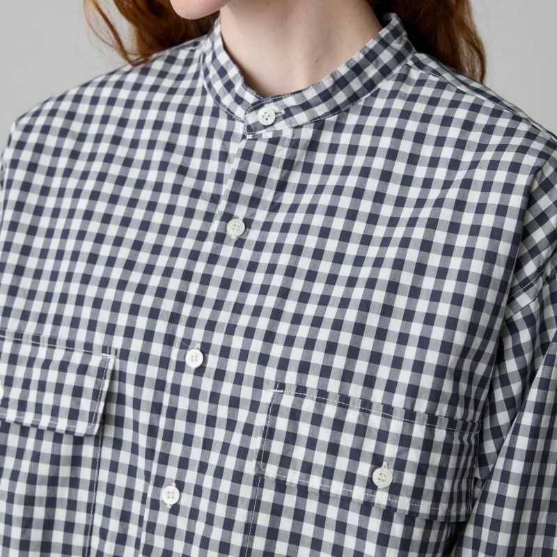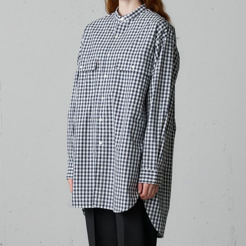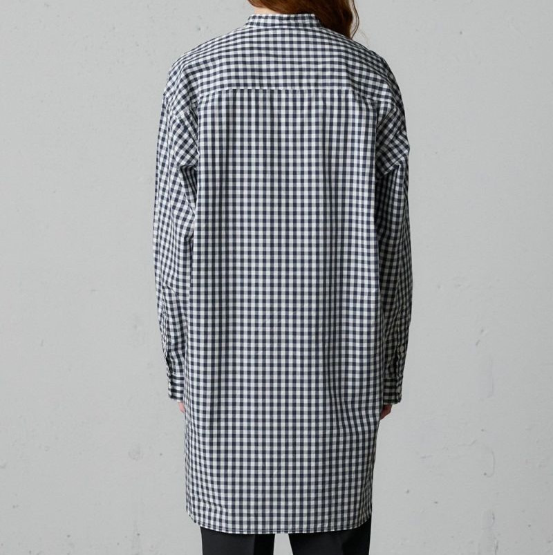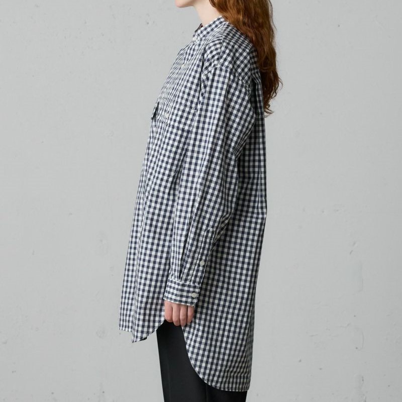 MidiUmi バンドカラービッグシャツ /NVチェック77 【日本製】