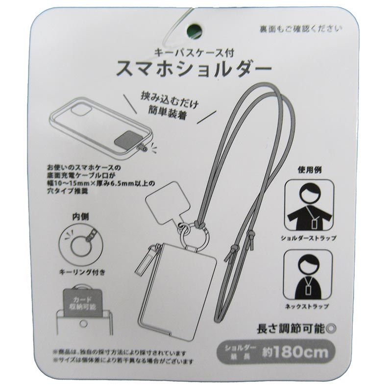 本体とストラップの接続部分にはストラップホルダーもあり、ケースに挟むだけでスマホを接続、パスケースとスマホが同時に持ち歩けます。