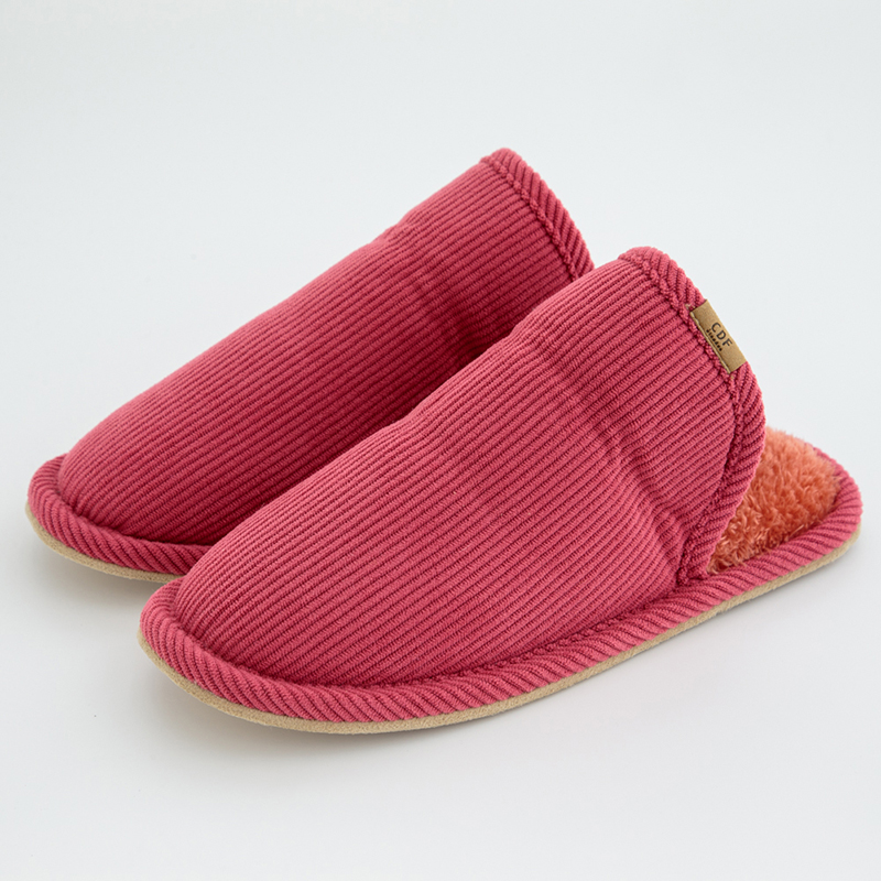 コーデュロイ生地と肉厚ボア生地を組み合わせたリッチなルームシューズ。