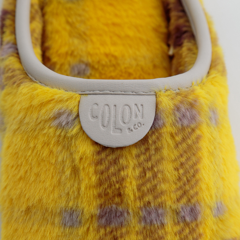 コロンとしたシルエットとカラフルなチェックファー柄がお部屋を明るくしてくれます。