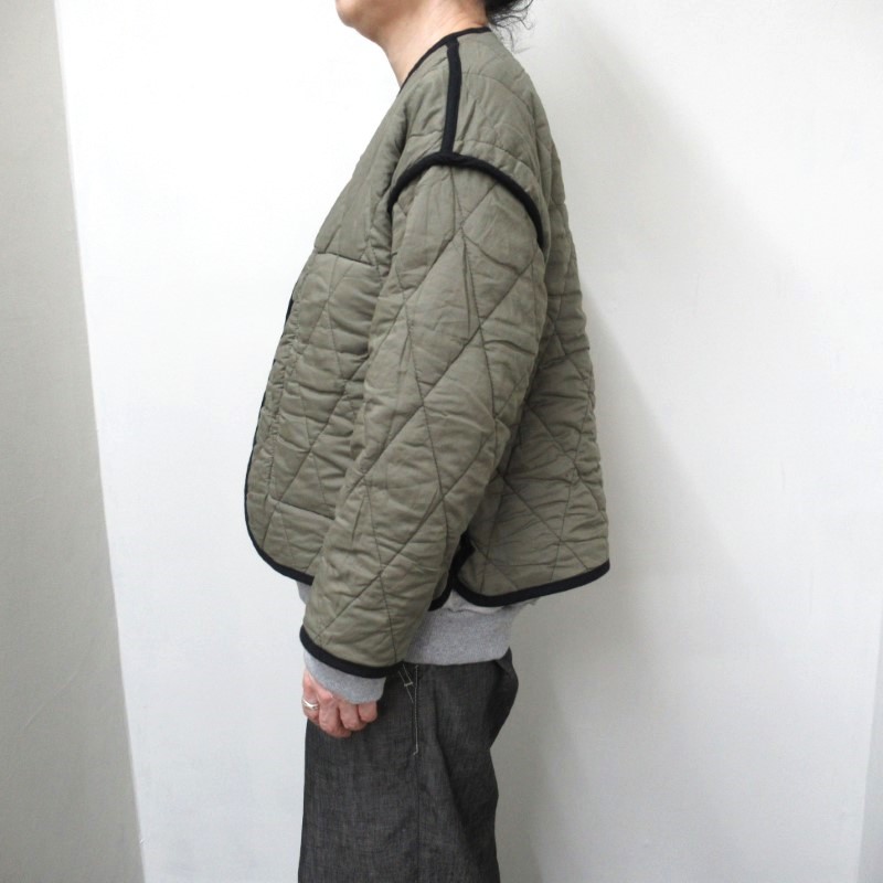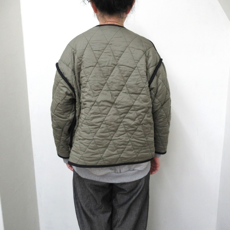 空気を含んだ接結のカット時と綿の生地で薄中綿をキルトしました。
