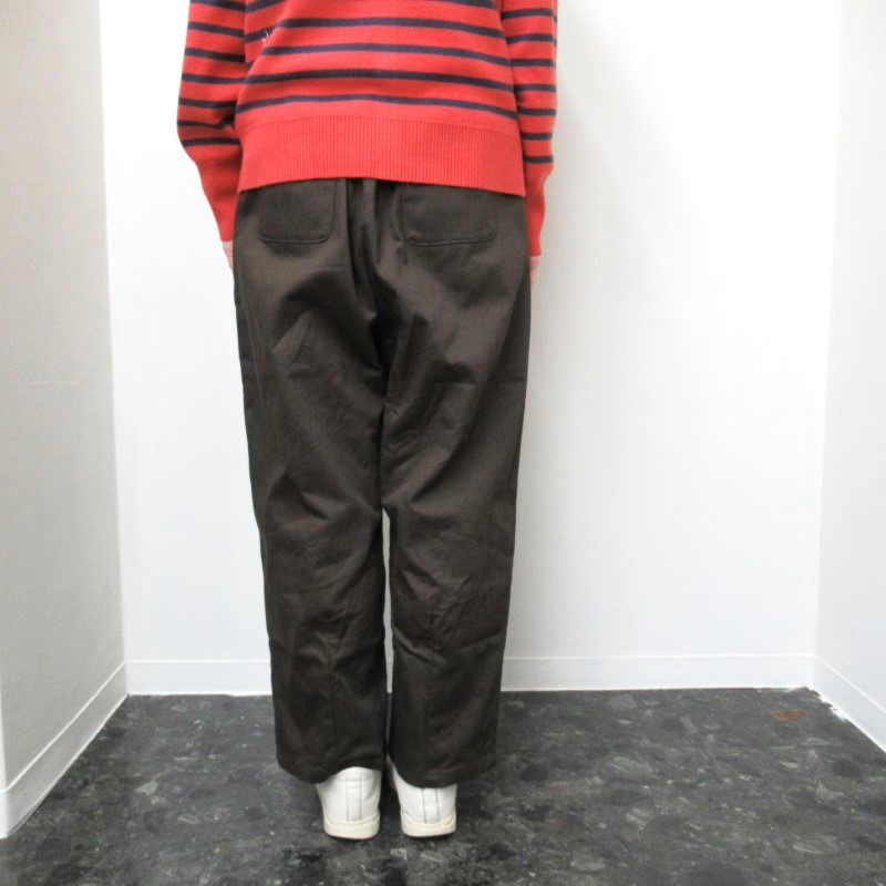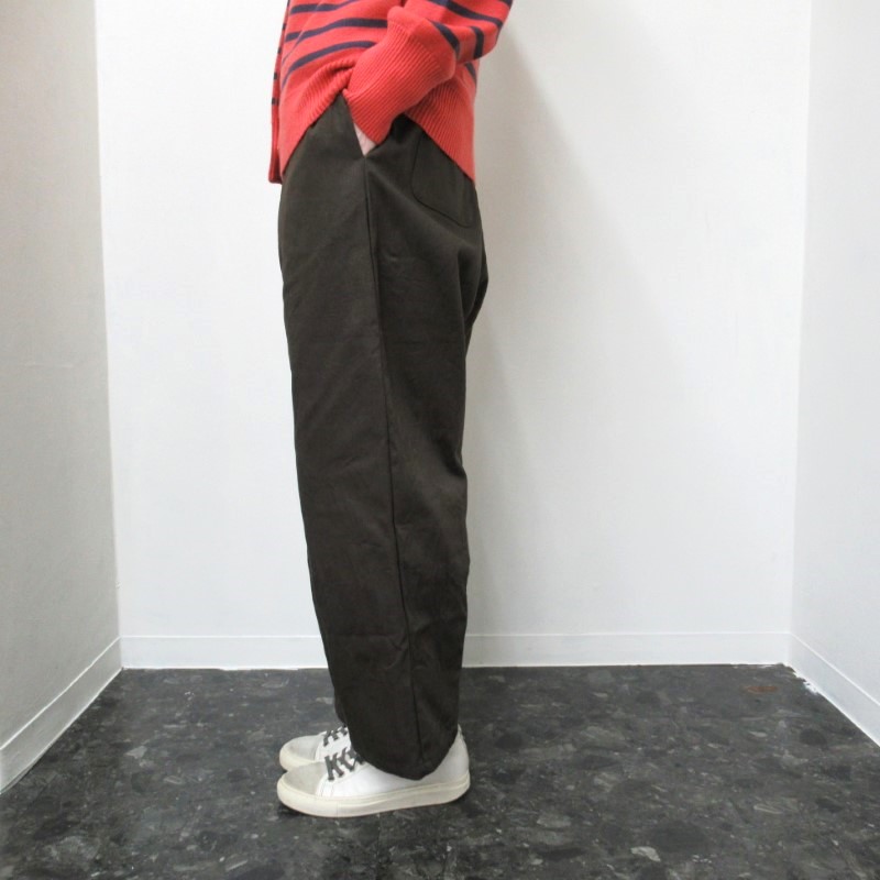 裾にダーツを入れたほんのりテーパードシルエットのパンツ。