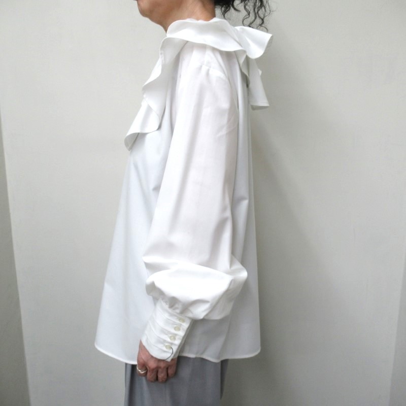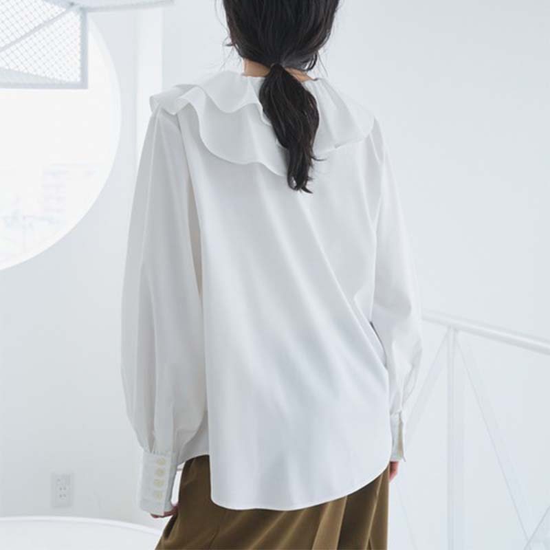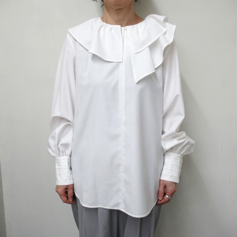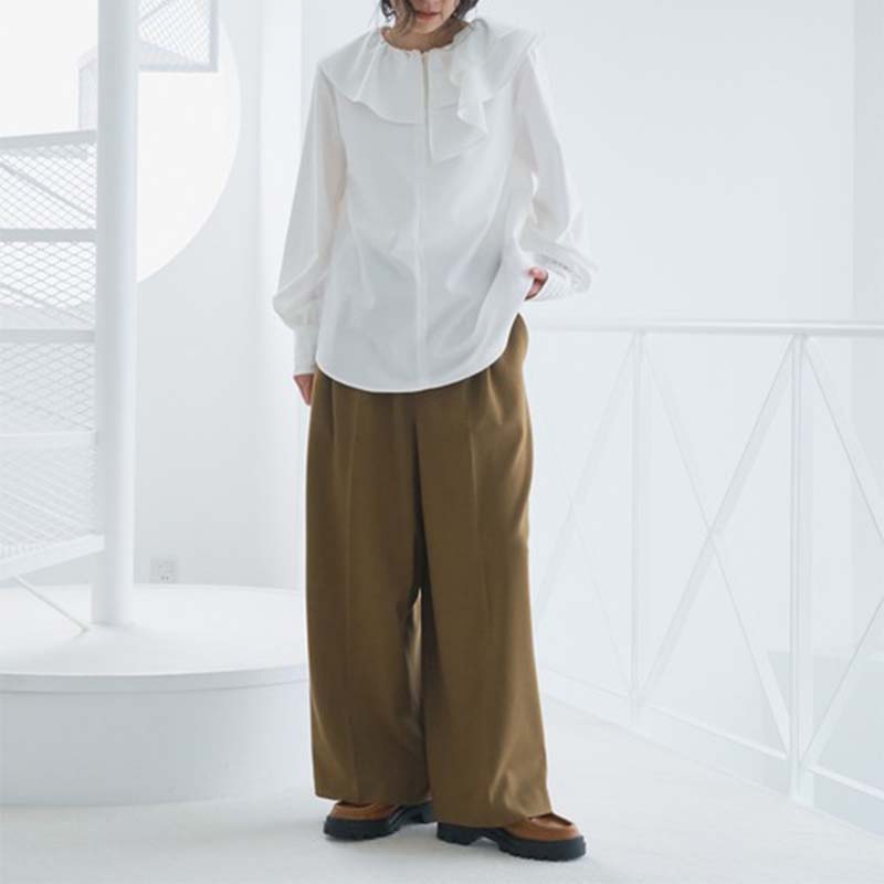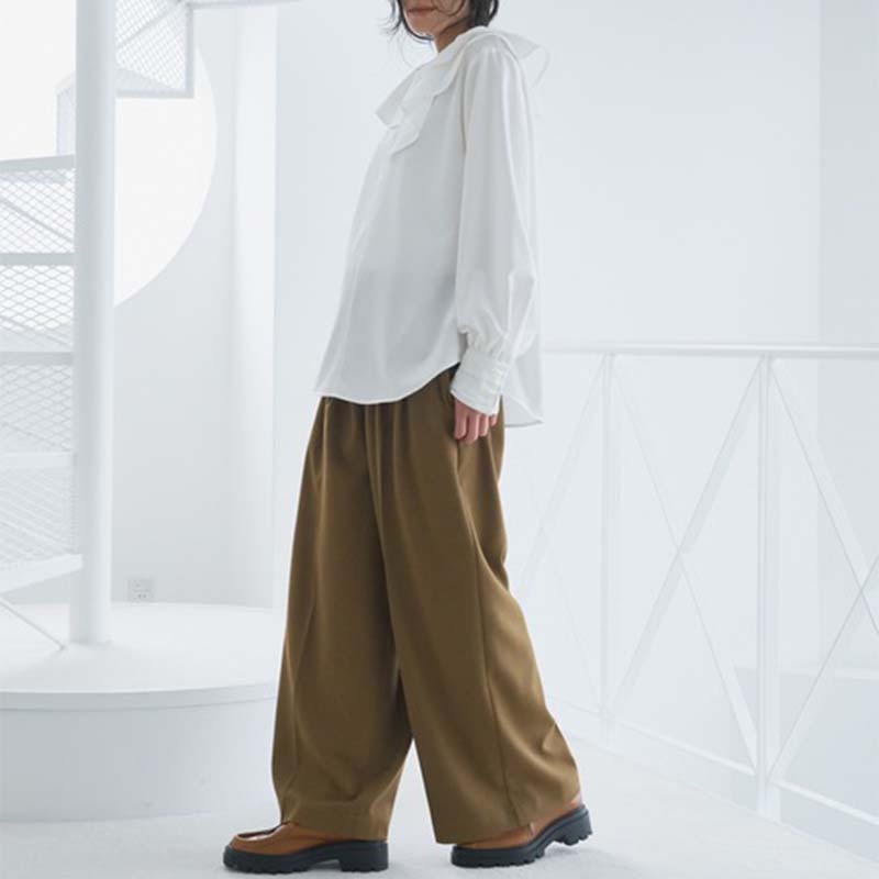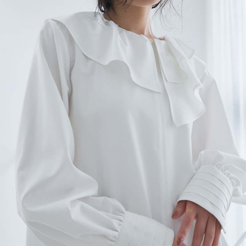 ボリュームスリーブにタックをたっぷり入れた袖口がアクセント。