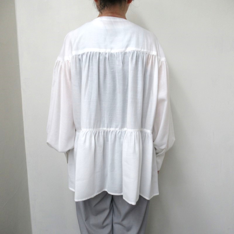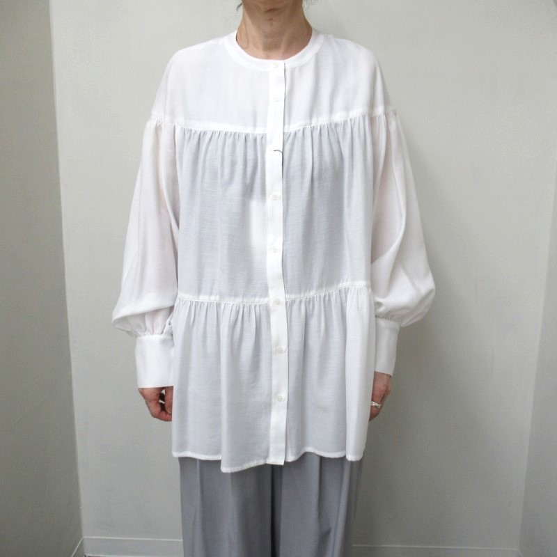 Audrey and john wad バンドカラーギャザーブラウス /WH100