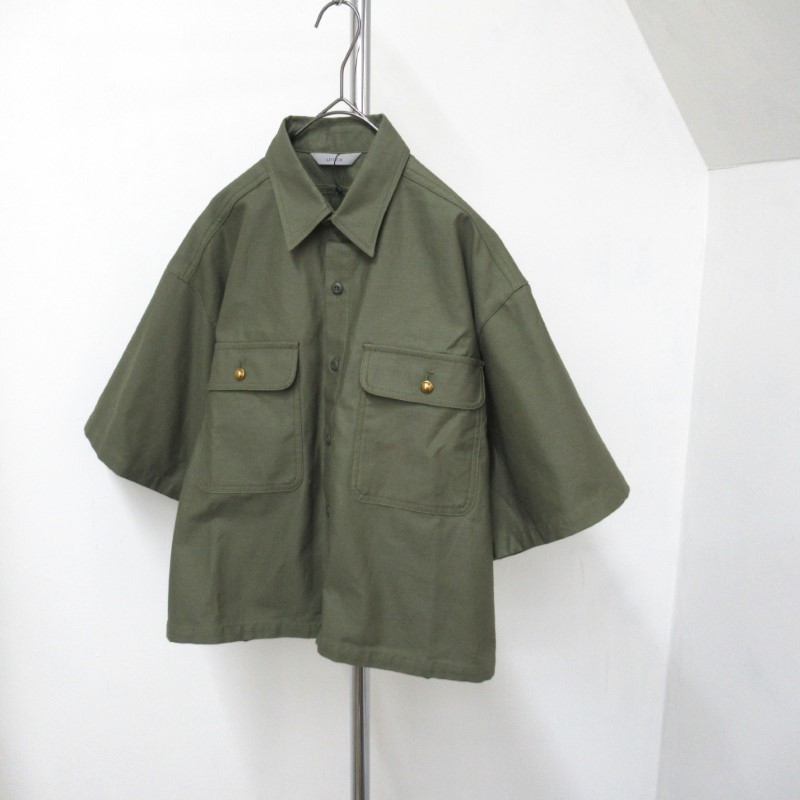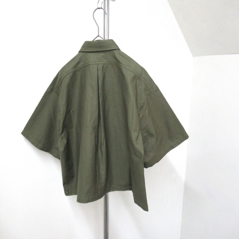 ミリタリーテイストのシャツをショート丈で女性らしい雰囲気に仕上げた1枚。