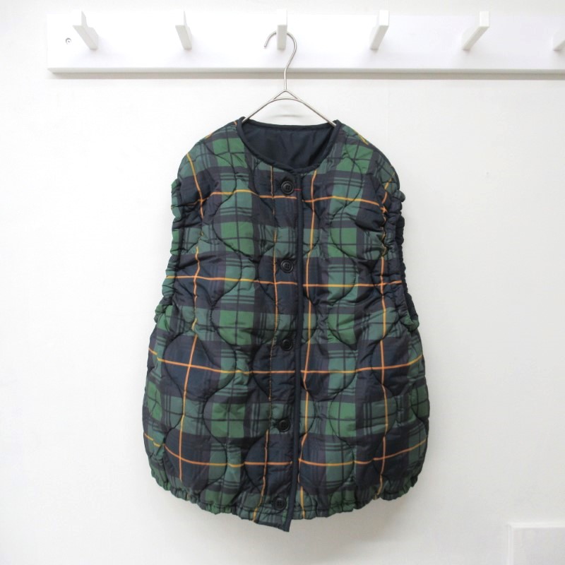 mao made チェック柄キルトリバーシブルベスト /GR×NV35