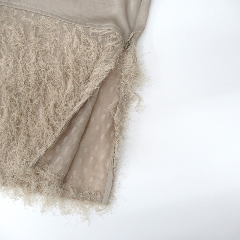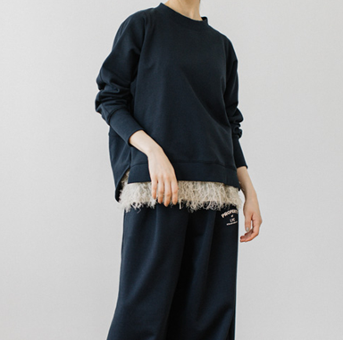 切替えになった裾部分にはフリンジが施され、レイヤードした時にアクセントになってくれます。