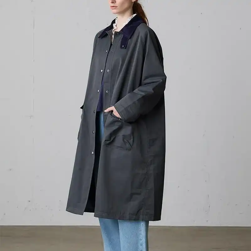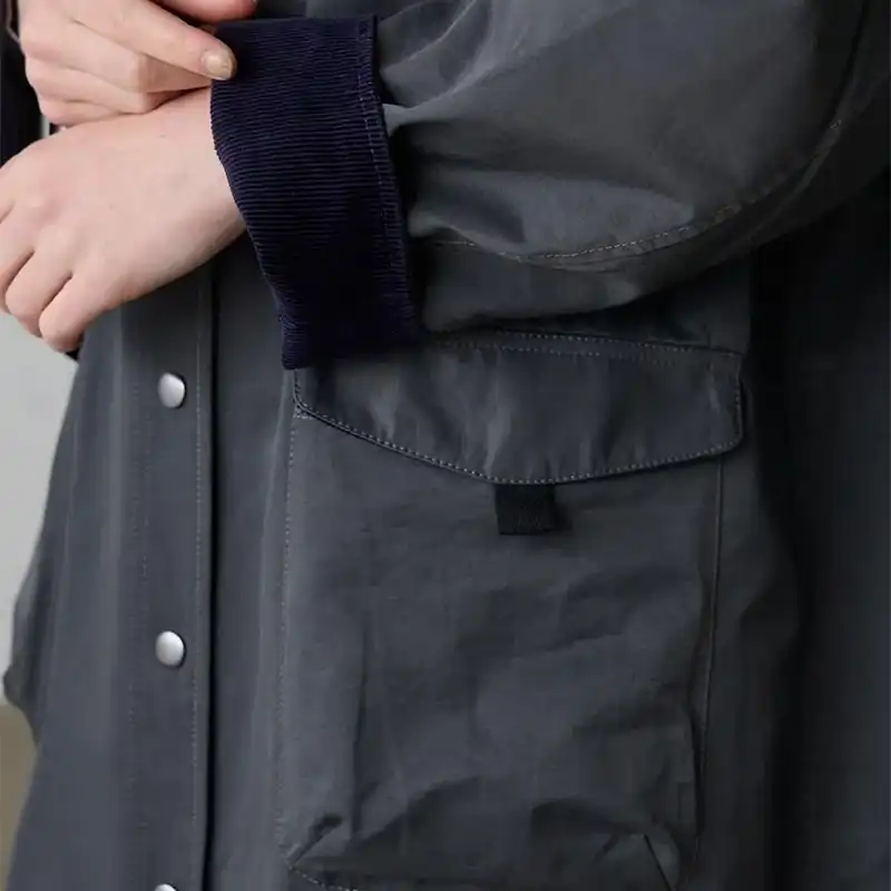 コットンポリエステルのタフタ素材をベースに、部分的にコーデュロイをあしらった、軽量で動きやすく、秋口から春先まで長く活躍するアウターです。