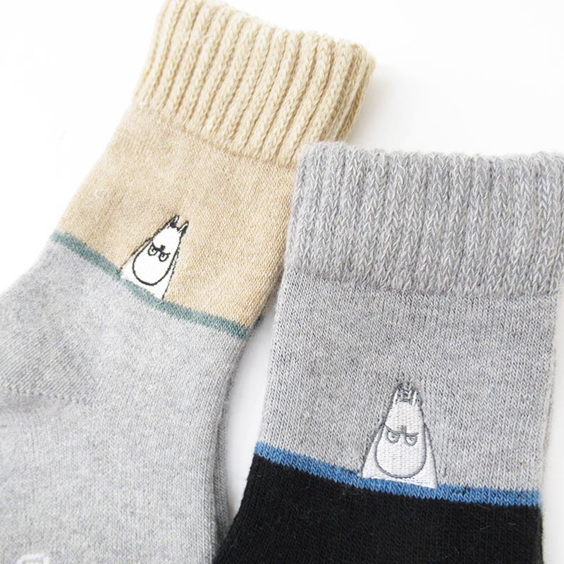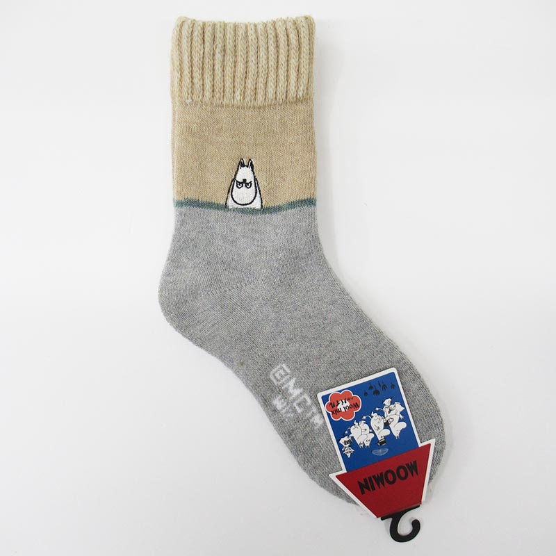 MOOMIN ホームウールmix 怒りムーミン刺繍切替 GY