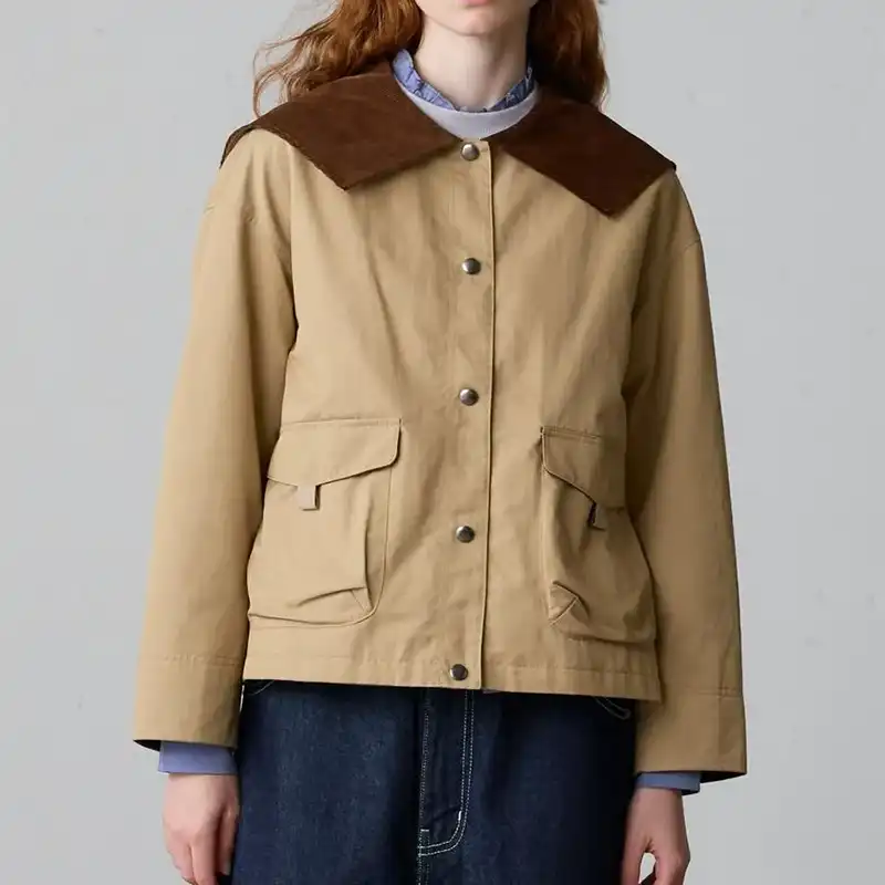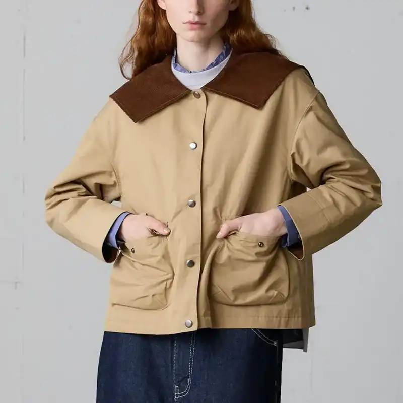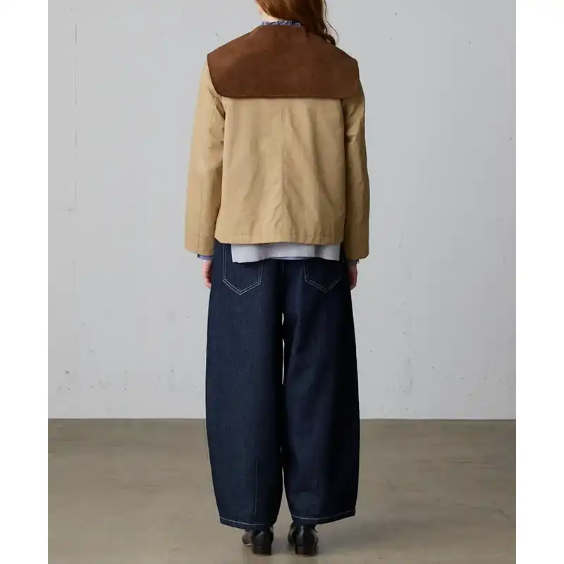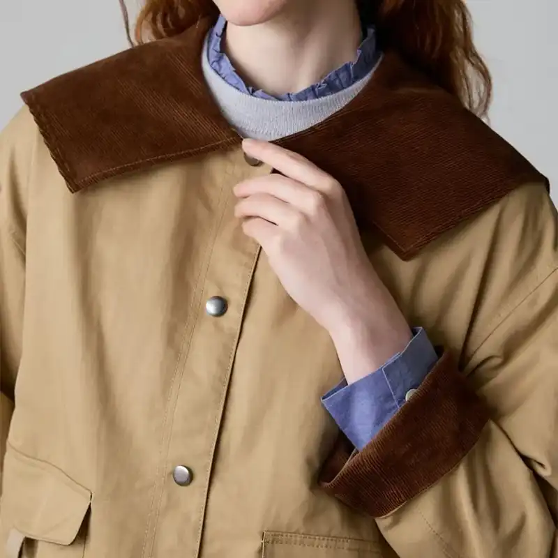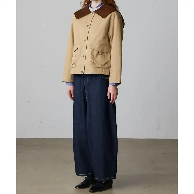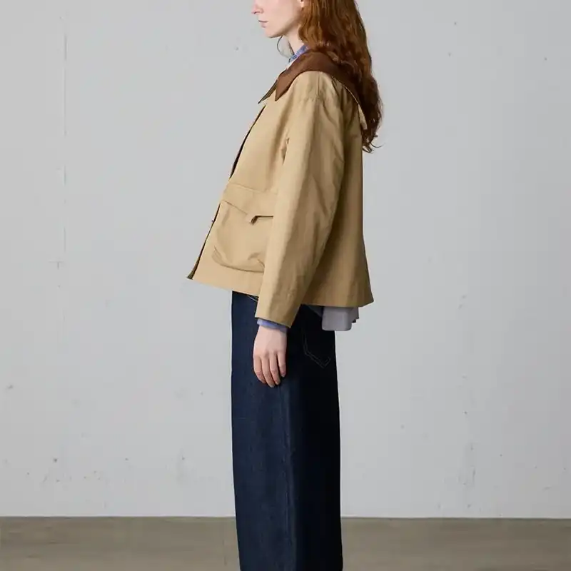 軽やかなコットンポリエステルのタフタ素材に、コーデュロイの切り替えを加え、奥行きのある表情になっています。