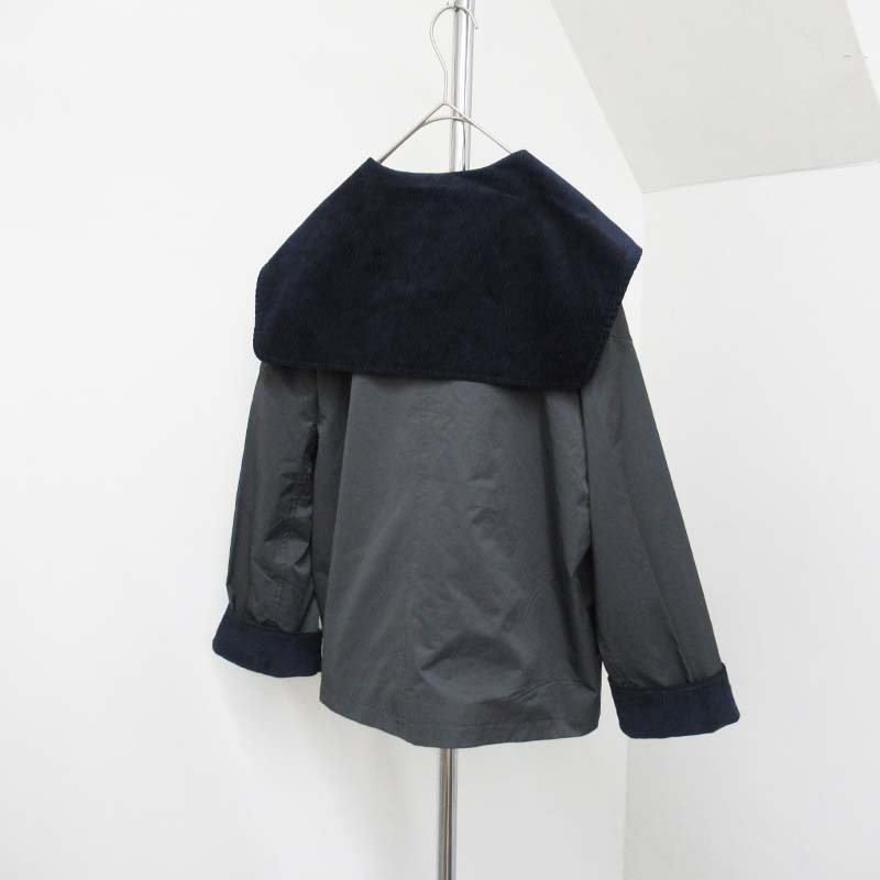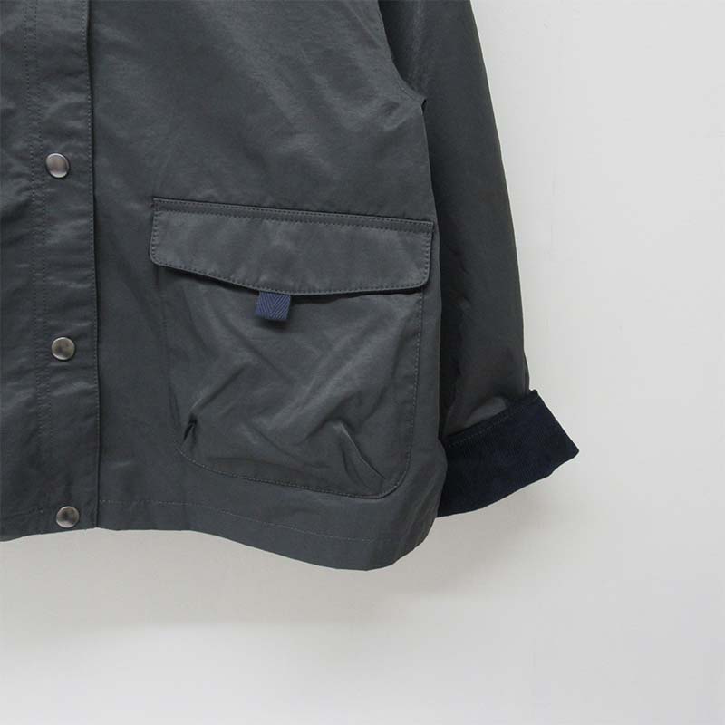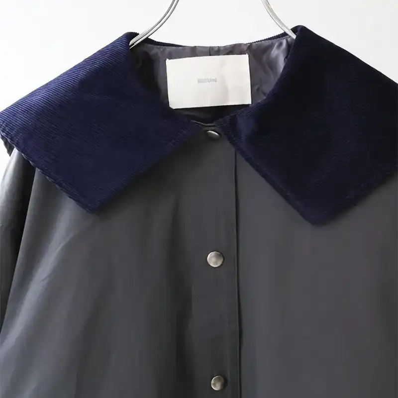 軽やかなコットンポリエステルのタフタ素材に、コーデュロイの切り替えを加え、奥行きのある表情になっています。