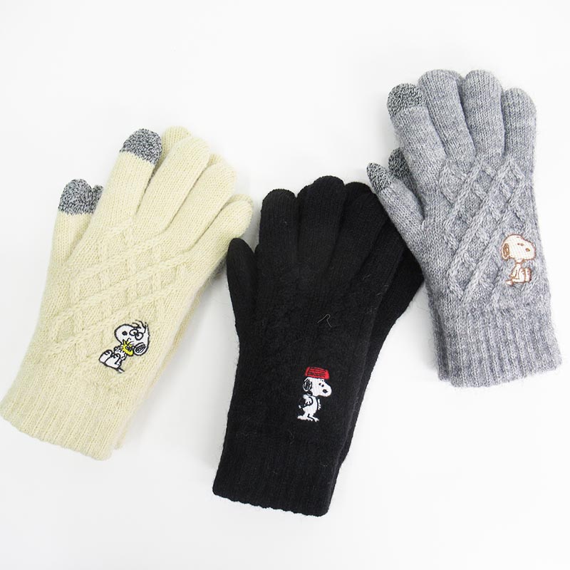 PEANUTS スマホ対応ケーブル手袋/かぶるBK