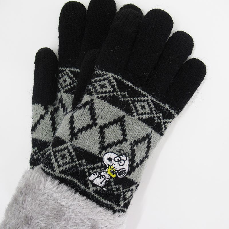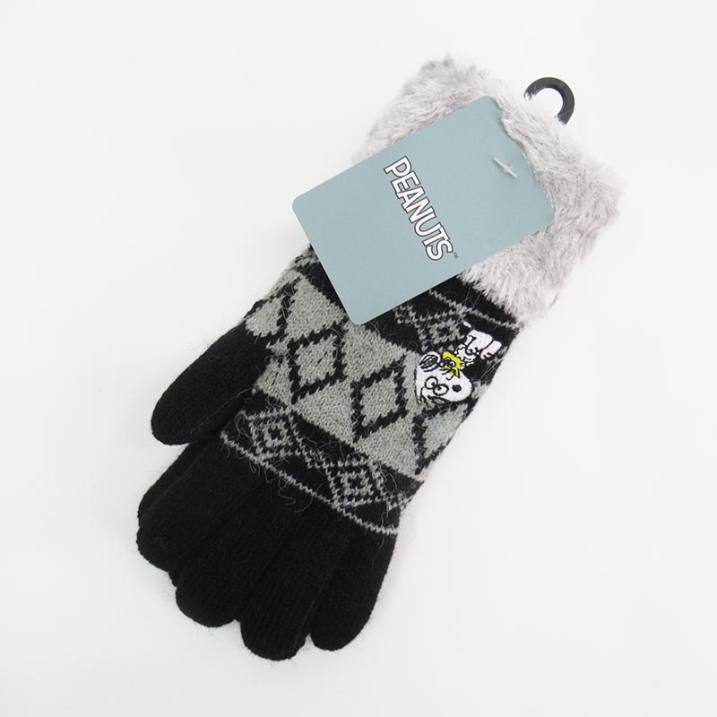 PEANUTS スマホ対応ケーブル手袋/びっくりBK