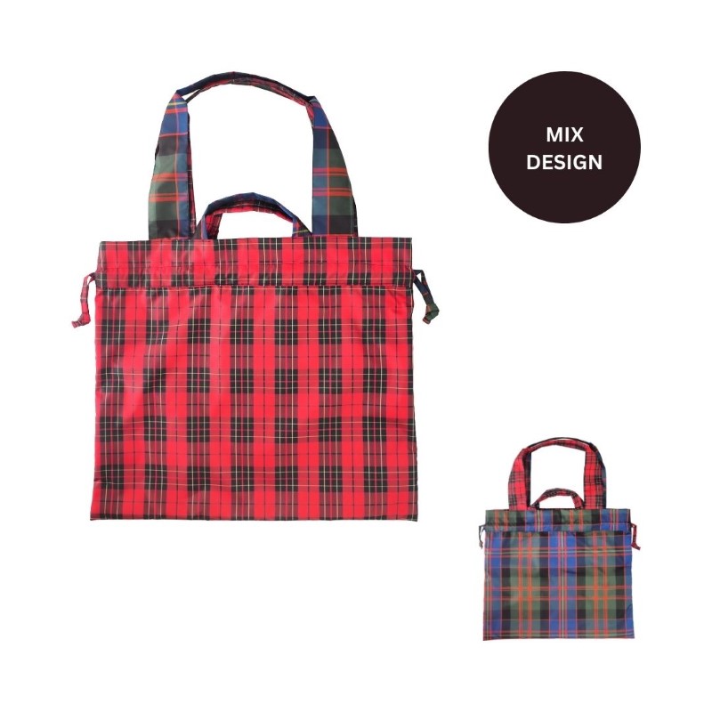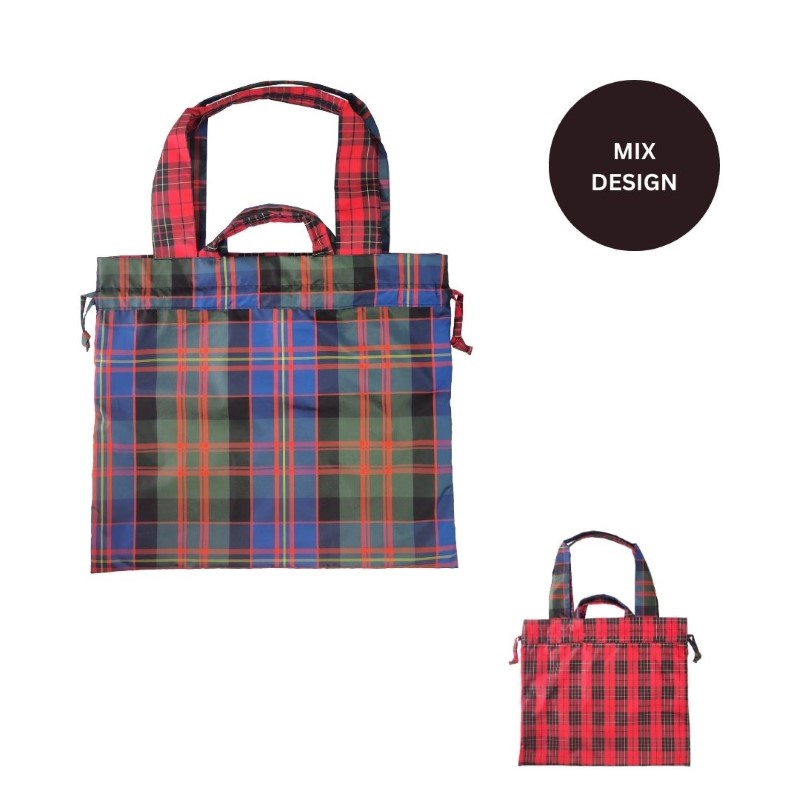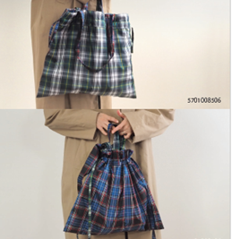 両面楽しめる!雨傘の生地を使ったチェック柄の2WAY撥水巾着トート