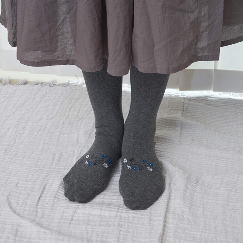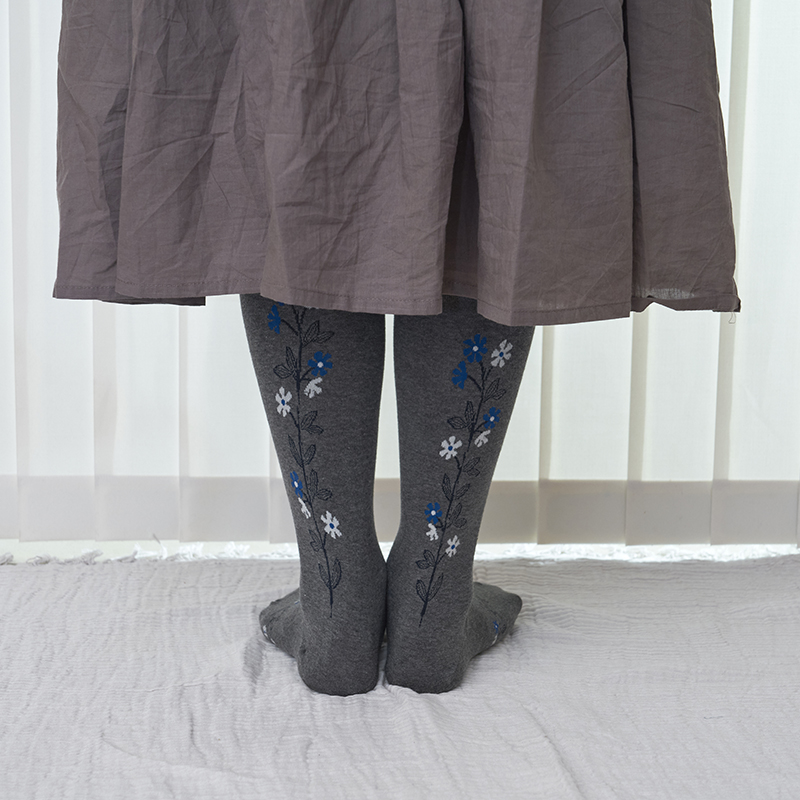 バックサイドに描かれた小花のデザインが愛らしくも大人っぽいタイツです。 甲にもぐるりと小花をあしらい、靴を脱ぐシーンやパンプスやローファーなど甲が見える靴とのコーデも◎