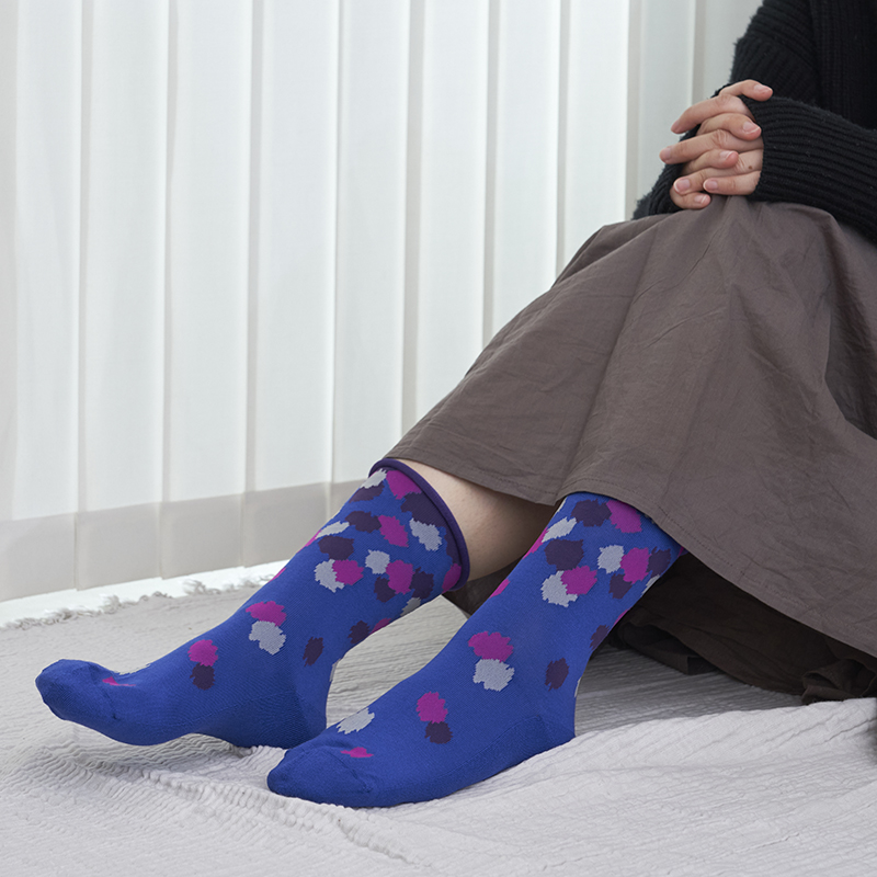 from F コットン クルー丈ソックス maali/ペインティング ブルー
