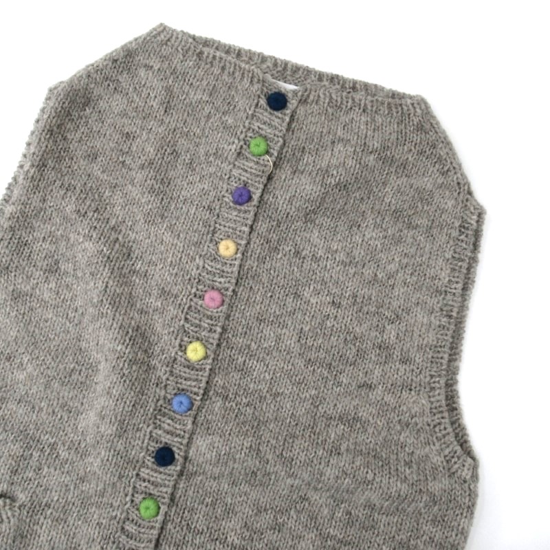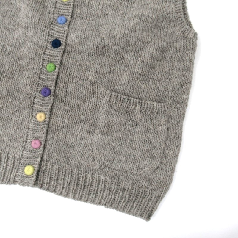 Peruの人気デザイン、ひとつひとつの釦を色変えしたカラフル釦のベスト。