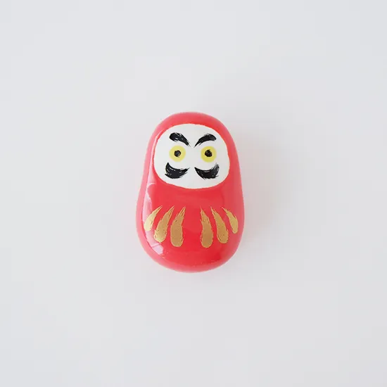 華やかな色合いと凛々しい表情に、ぱっと目を引く「だるま」の箸置きです。金彩が施してあるので、お正月やお祝い事などのおめでたい席にもぴったり。 だるまは日本の伝統的な縁起物で、海外の方へのお土産や記念品としても人気です。