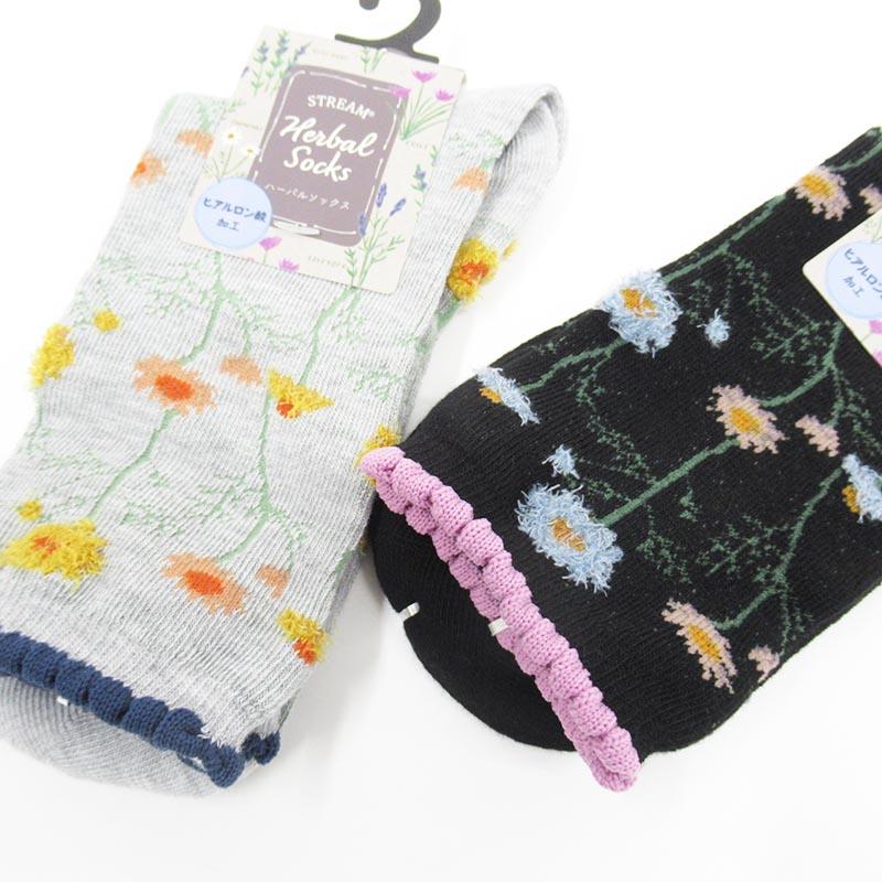 ヒアルロン酸加工のしっとりハーバルソックス。