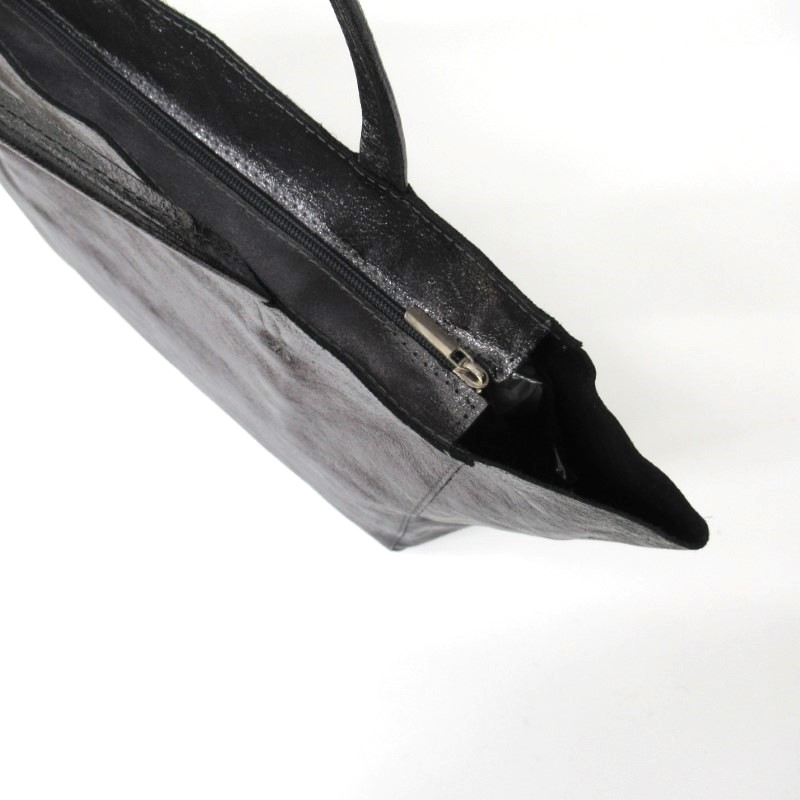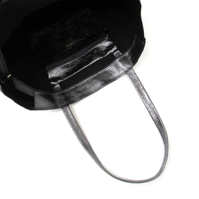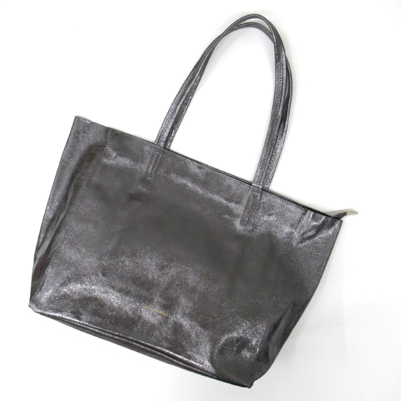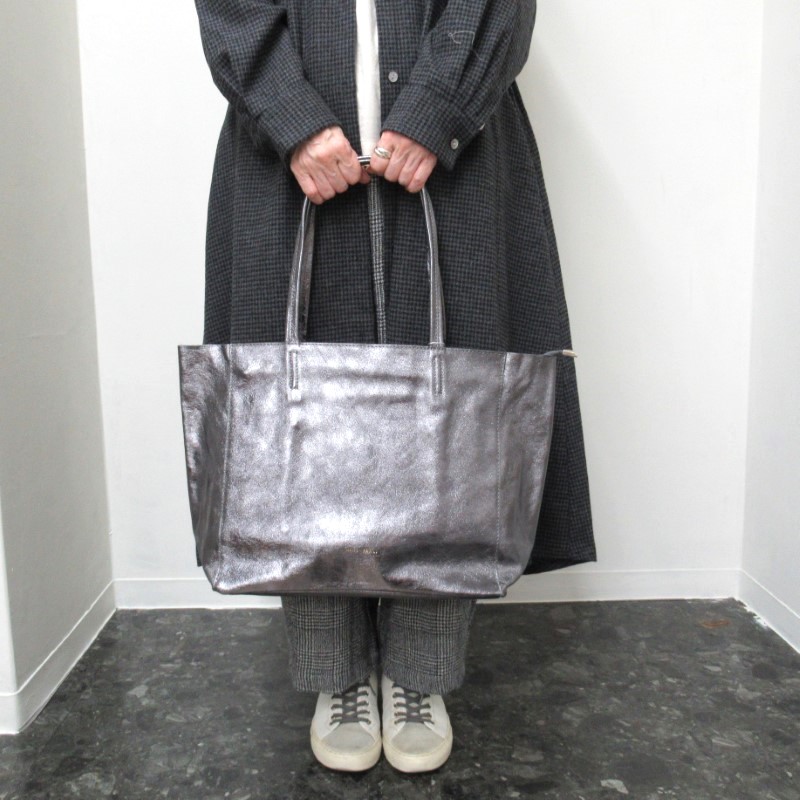 牛革にシボ加工とメタリック加工が施されたトートバッグ。