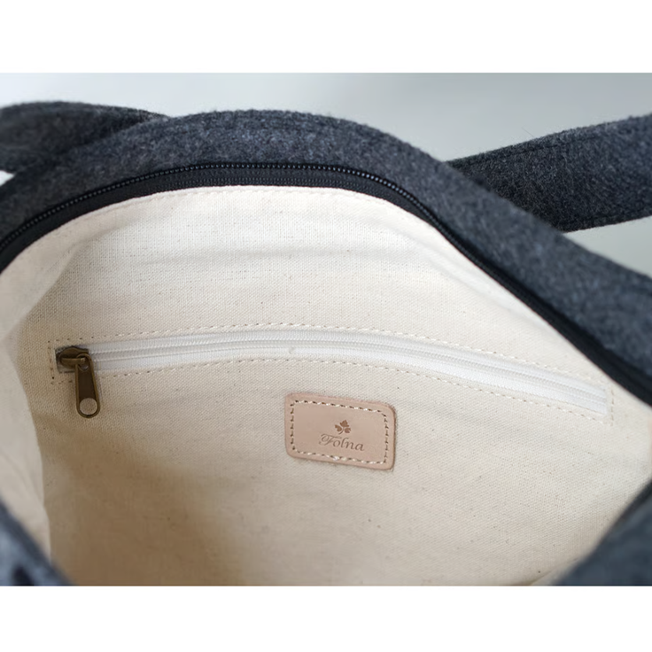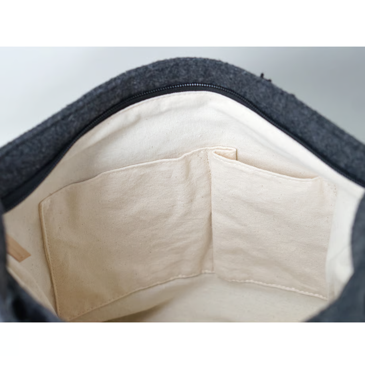 バッグ内側にはオープンポケットとファスナーポケットがあり、小物の収納に便利な仕様。