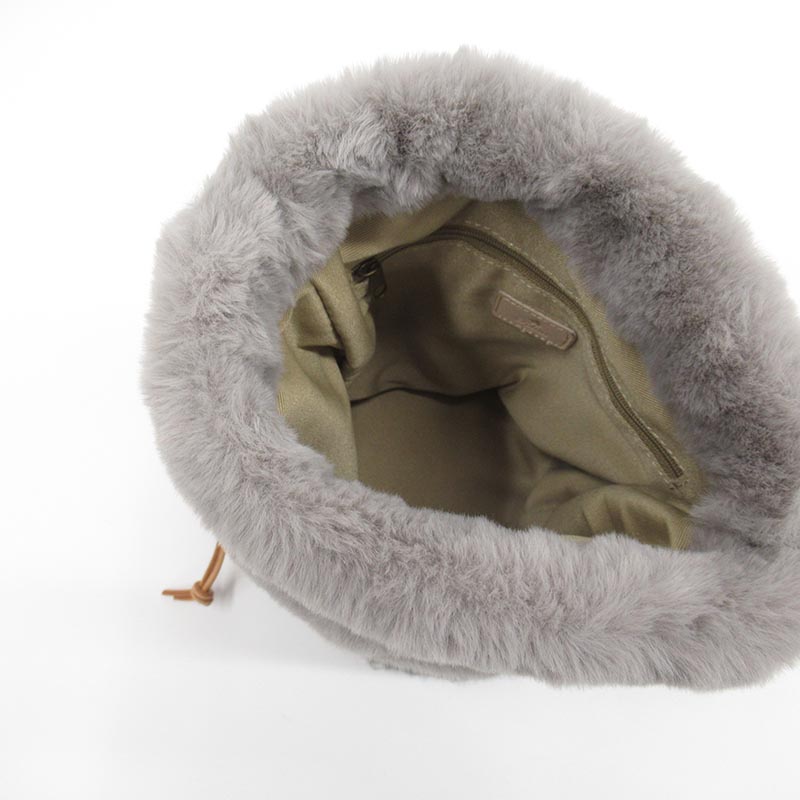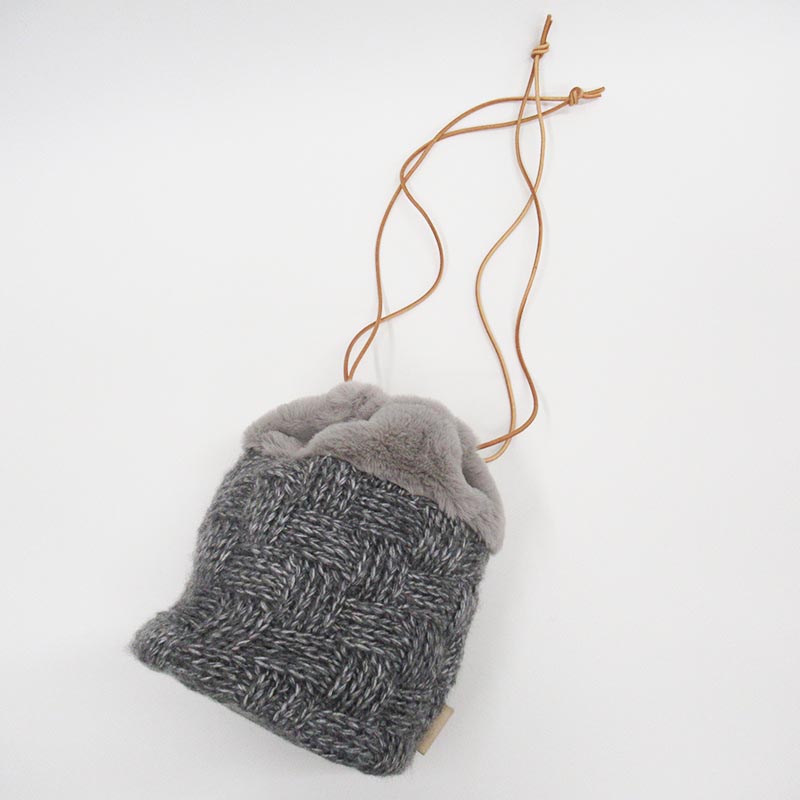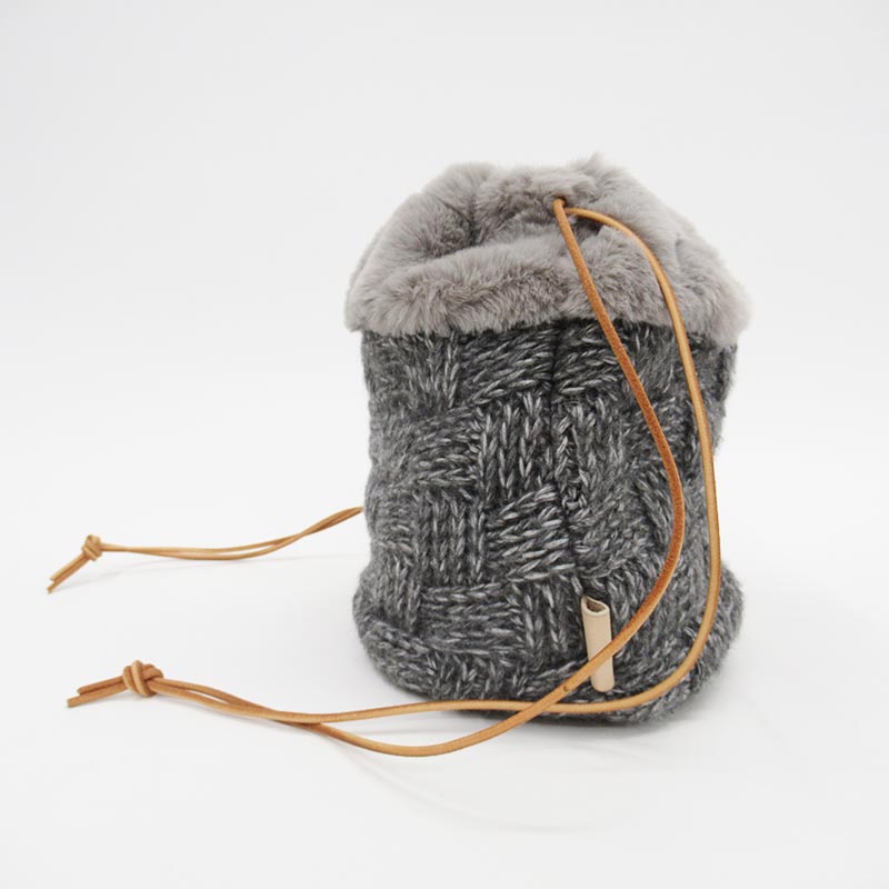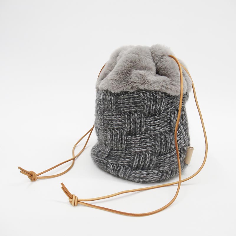 ニットのボディとファーのコンビネーションがシーズンムード溢れる巾着バッグ。