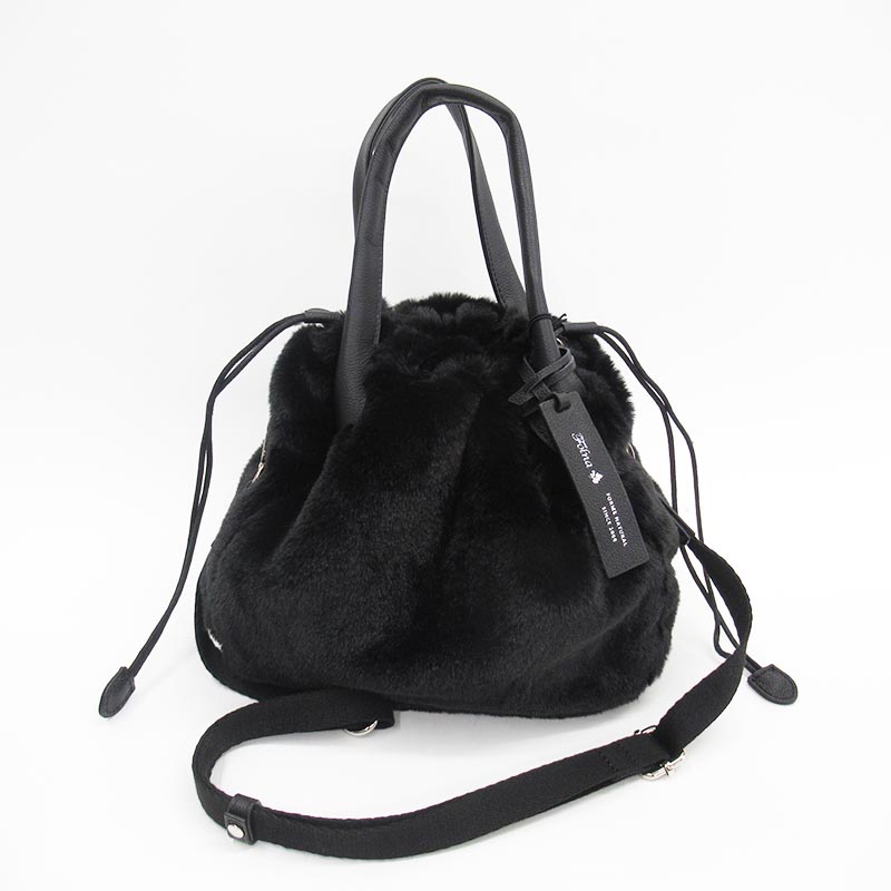 Folna エアリーファー巾着2WAYバッグ /BK#10
