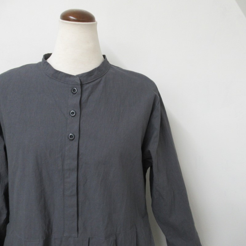 バンドカラーに3つ釦がアクセントのすっきりとしたデザインです。