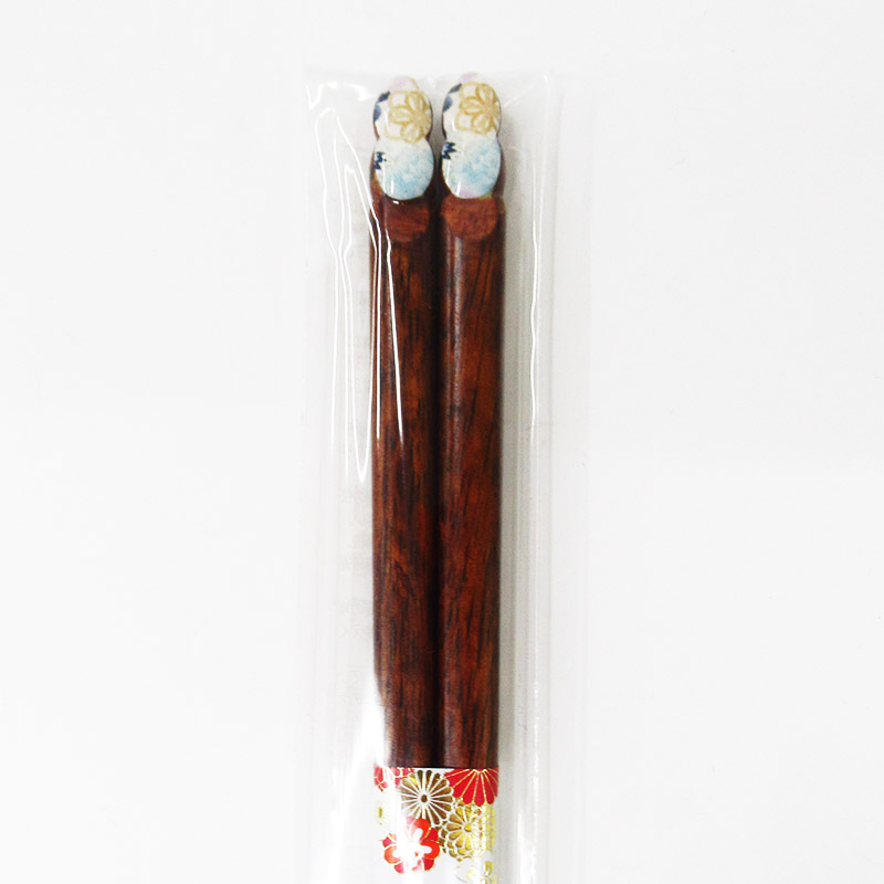 カットされた箸のてっぺんに、瓢箪のを形どった飾りがあしらわれています。光沢と和の模様が、食卓にさりげない華やかさをプラスしてくれます。