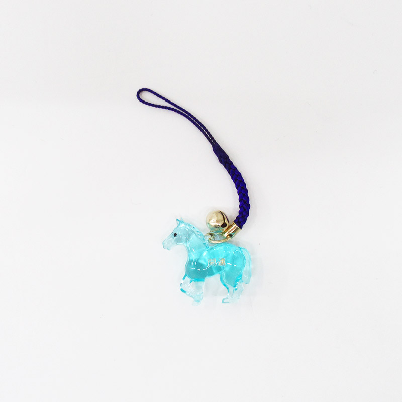 「開運」の文字が運気が上がりそうなクリアタイプの午の根付です。