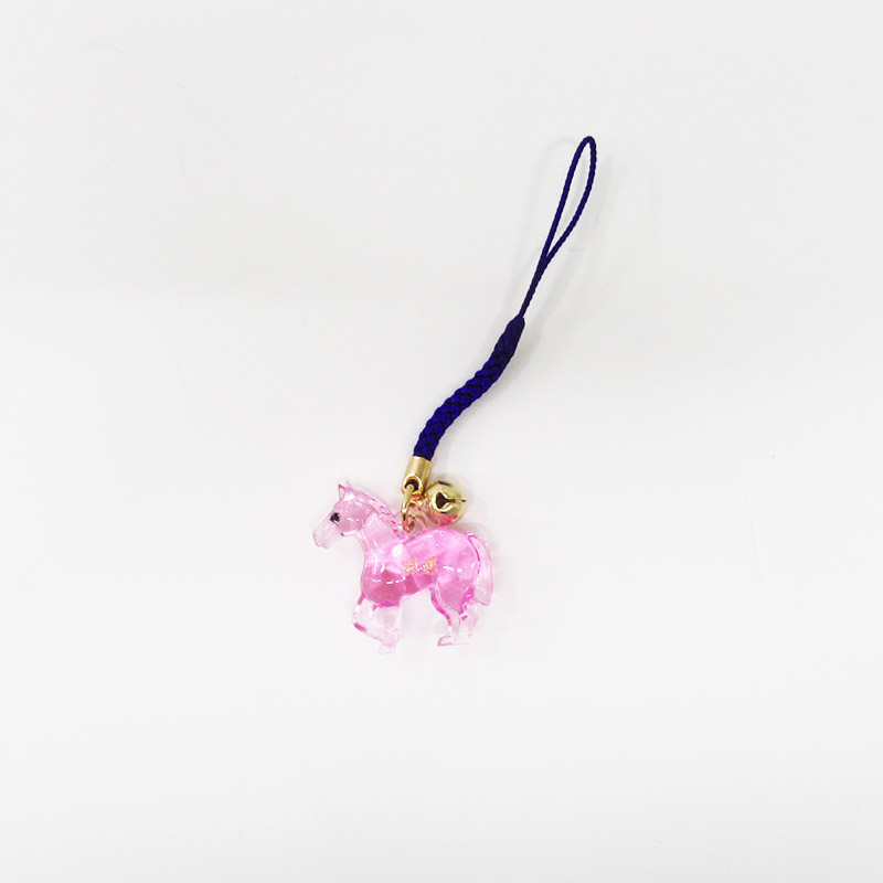 「開運」の文字が運気が上がりそうなクリアタイプの午の根付です。