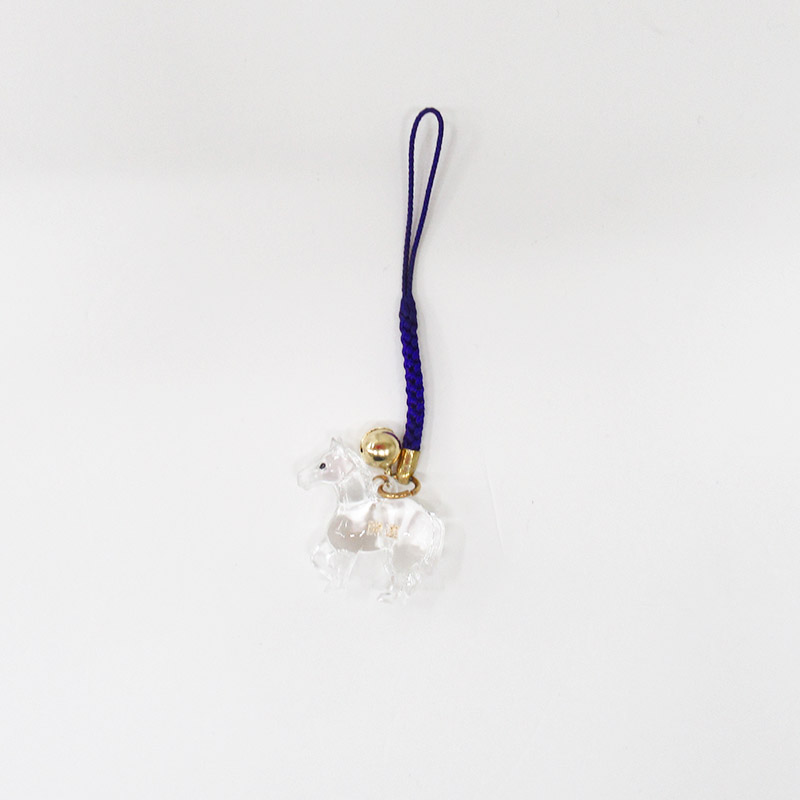 「開運」の文字が運気が上がりそうなクリアタイプの午の根付です。