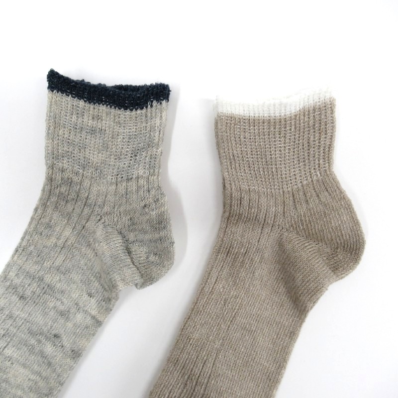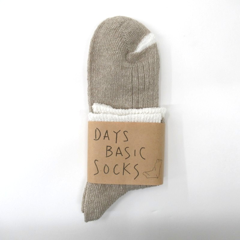 DAYS リネンショート丈ソックス 35285/キナリ×サラシ03 【日本製】