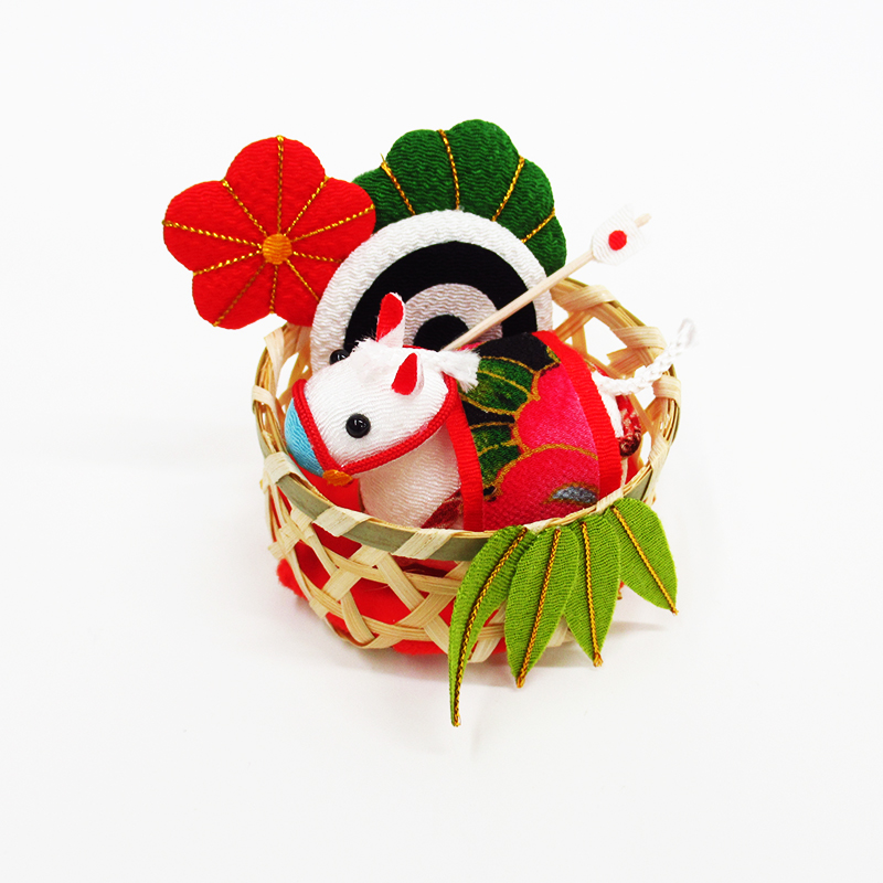 ちりめんの優しい風合いで仕上げた午年の置物です。