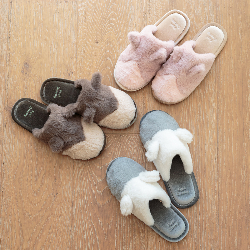 毎年大人気 ! 耳付きのアニマルデザイン×ファー素材のルームシューズ。