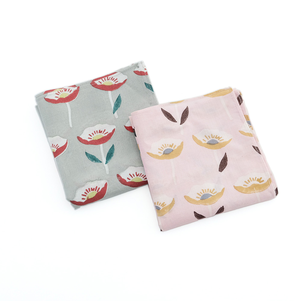 shesay アネモネ柄のブロックプリントハンカチ /PK