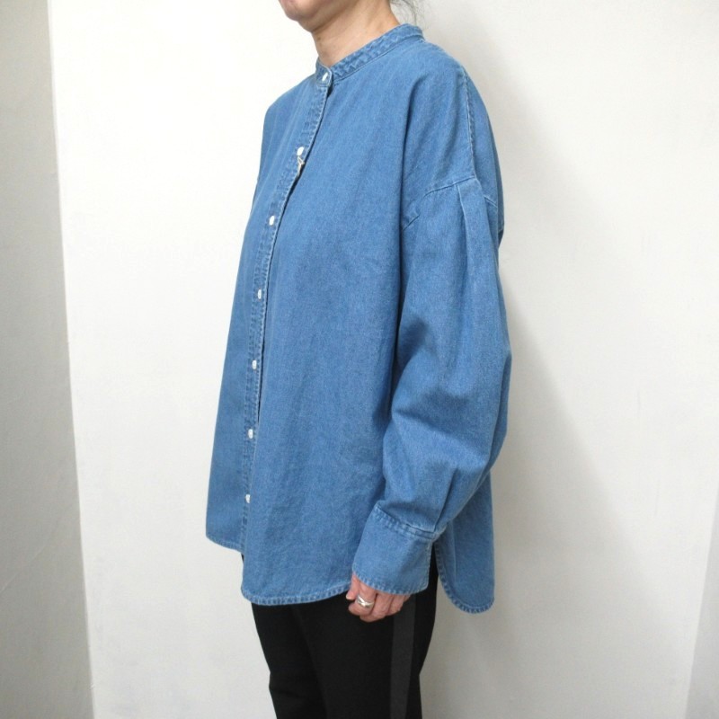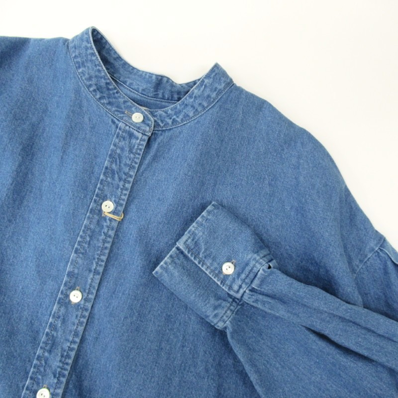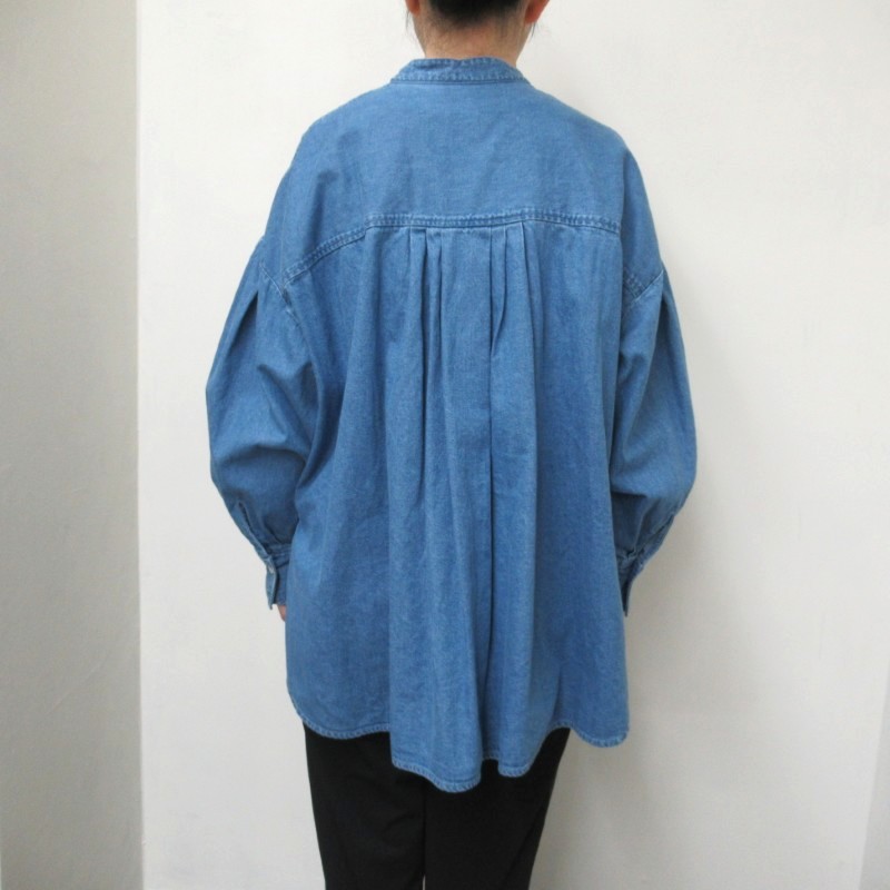 袖山、袖口にもタックを施し女性らしい雰囲気に仕上げたデニムシャツ。