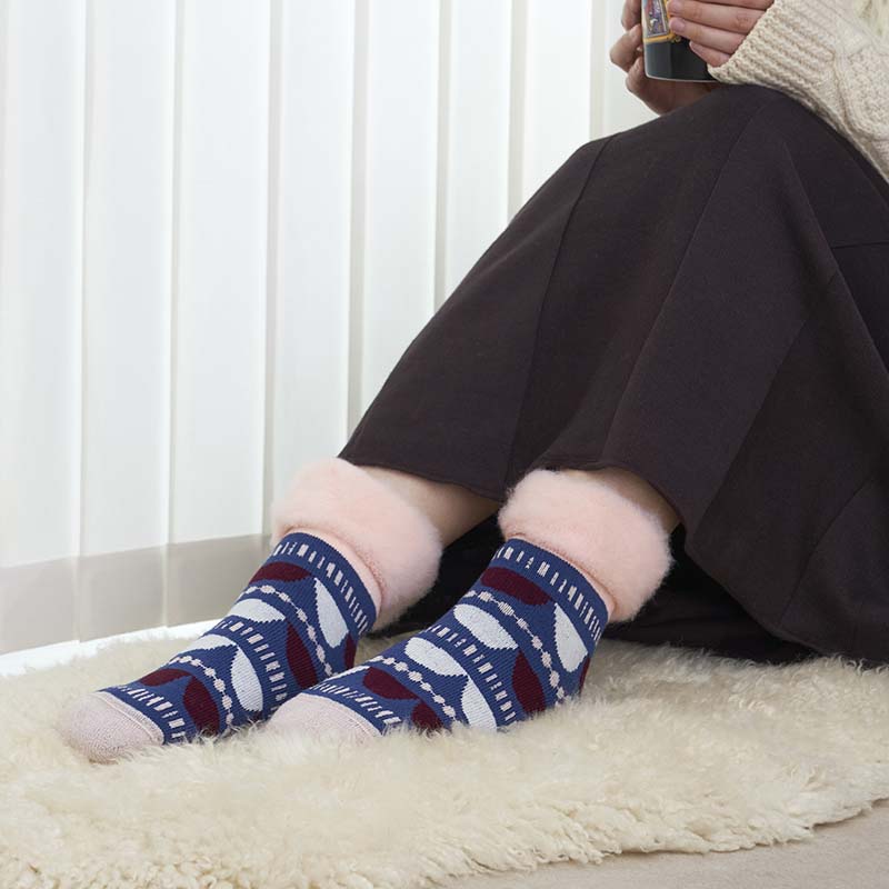 フィンランド発祥の肌側がふわふわに起毛された靴下は、驚くほど暖か。肌側の起毛は特殊な起毛機をさらにカスタマイズして、もこもこソックスの為にオーダーメイドしています。